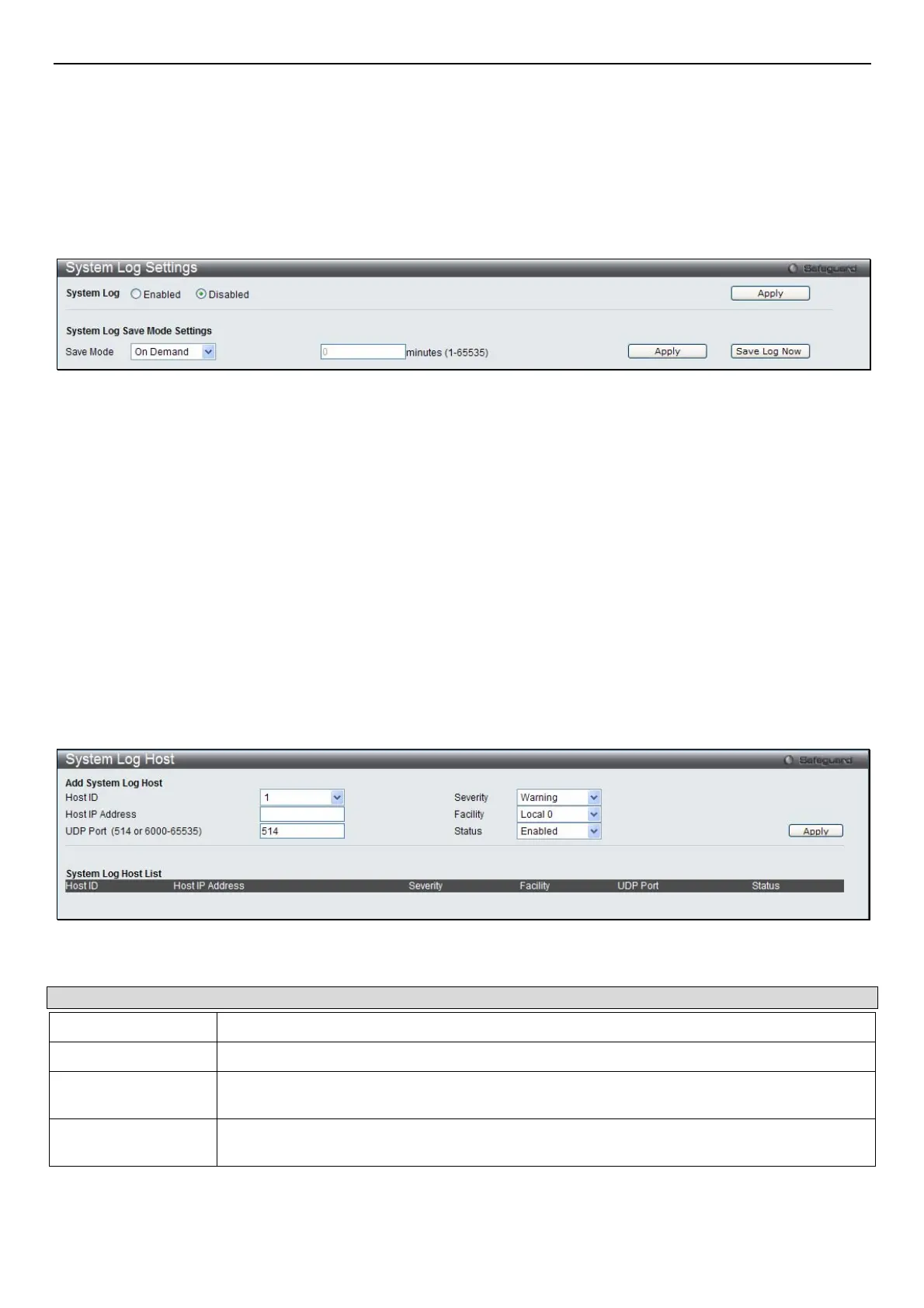 click System Log Configuration > System Log Host, to view the window displayed below.