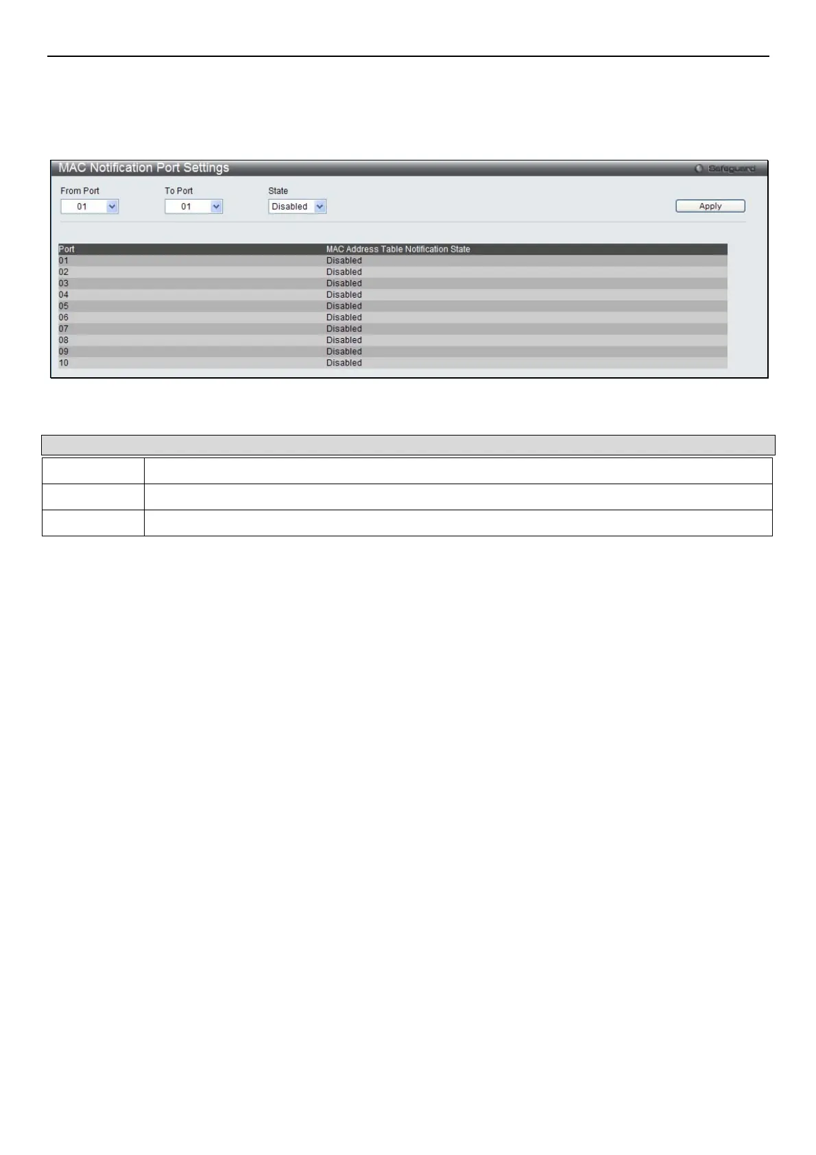 Enable MAC Notification for the ports selected using the pull-down menu.