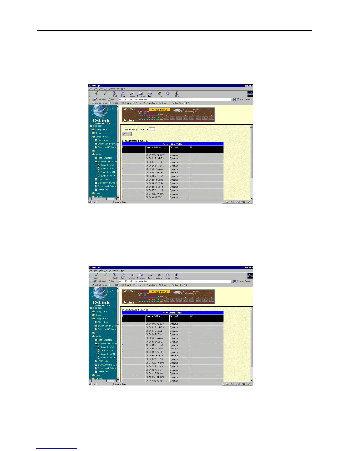 The Switch allows you to display a forwarding table containing Switch ports, source addresses, learned