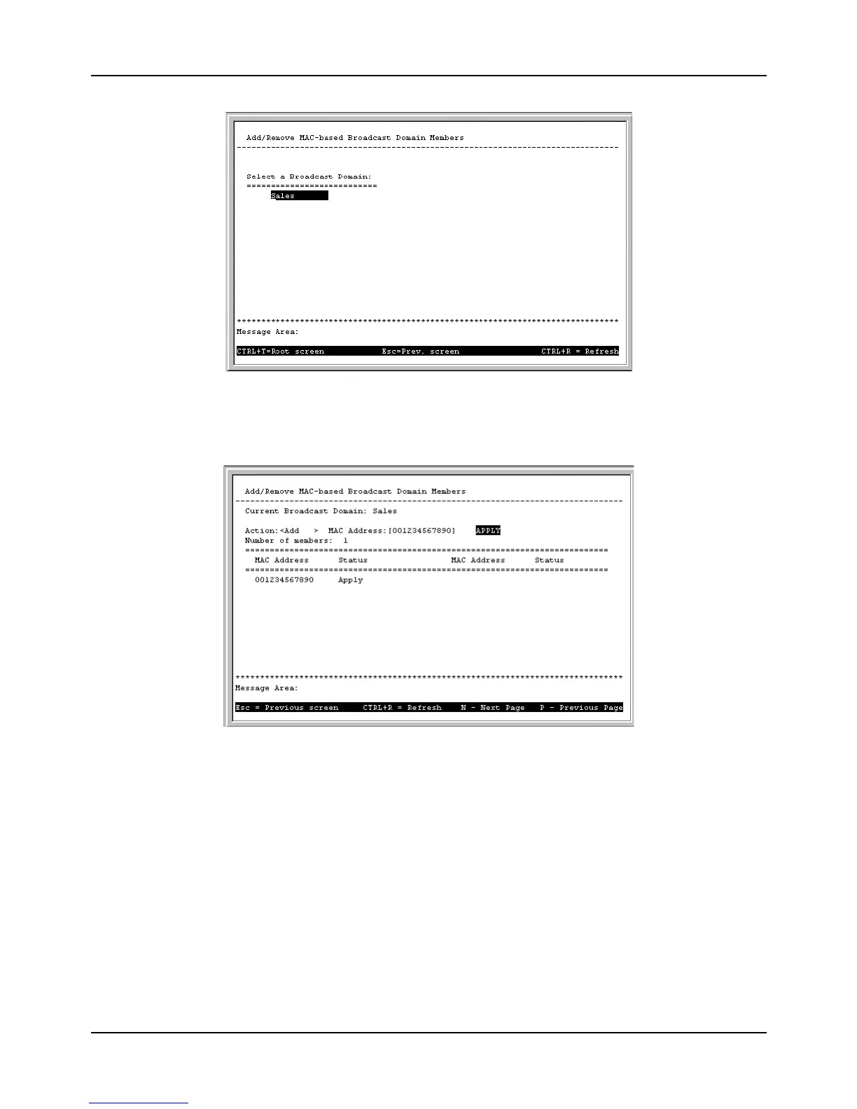 Figure 6-31. Second Add/Remove MAC-based Broadcast Domain Members screen