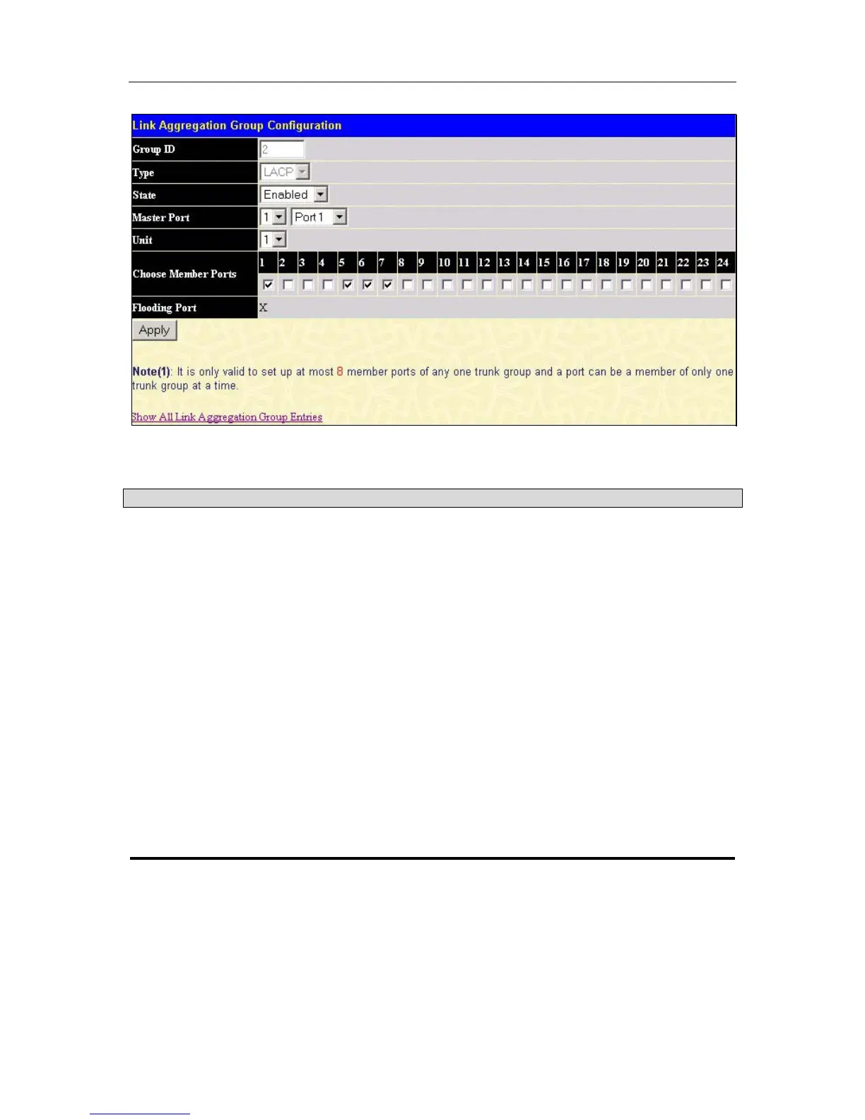 Choose the members of a trunked group. Up to 8 ports per group can be