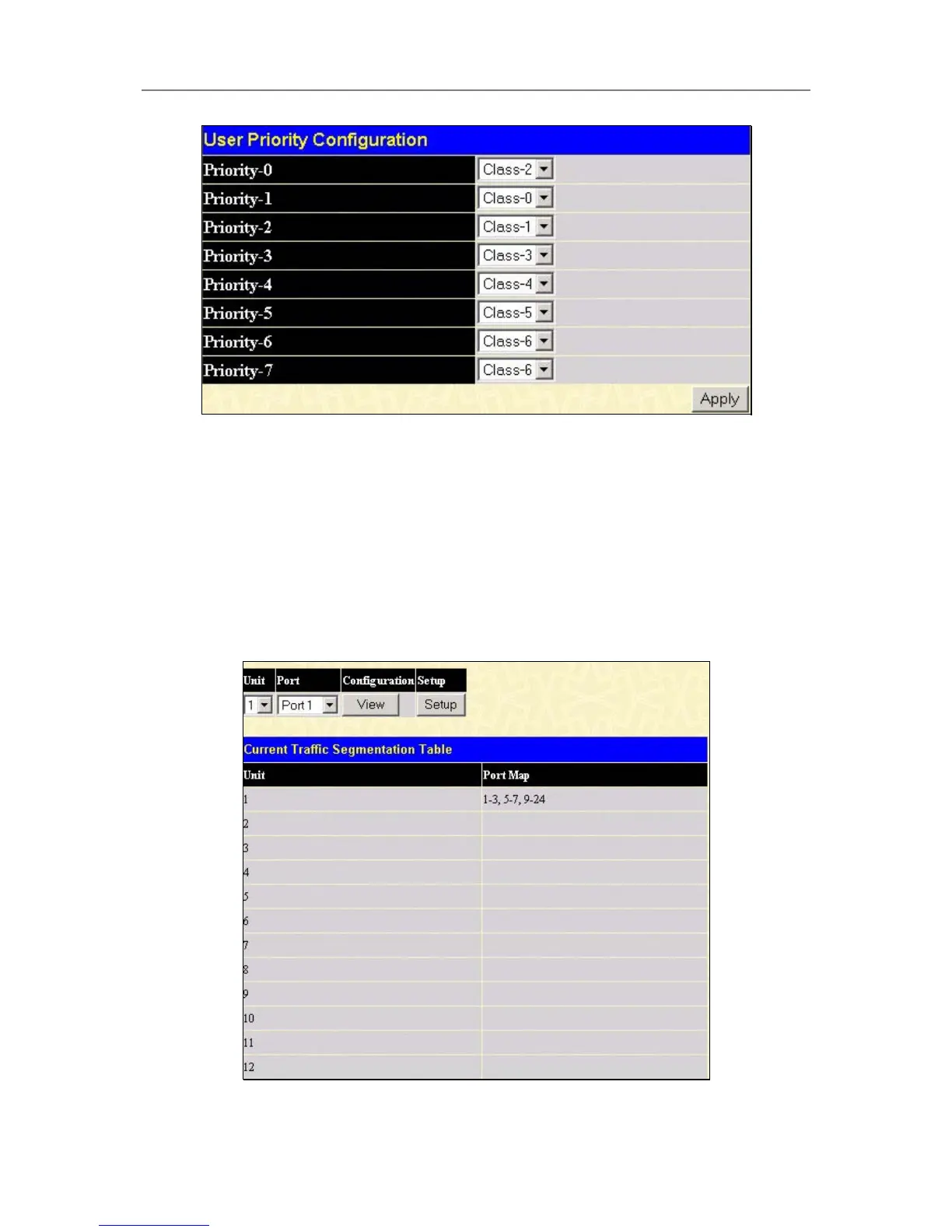 8 levels of 802.1p priorities. Click Apply to set your changes.