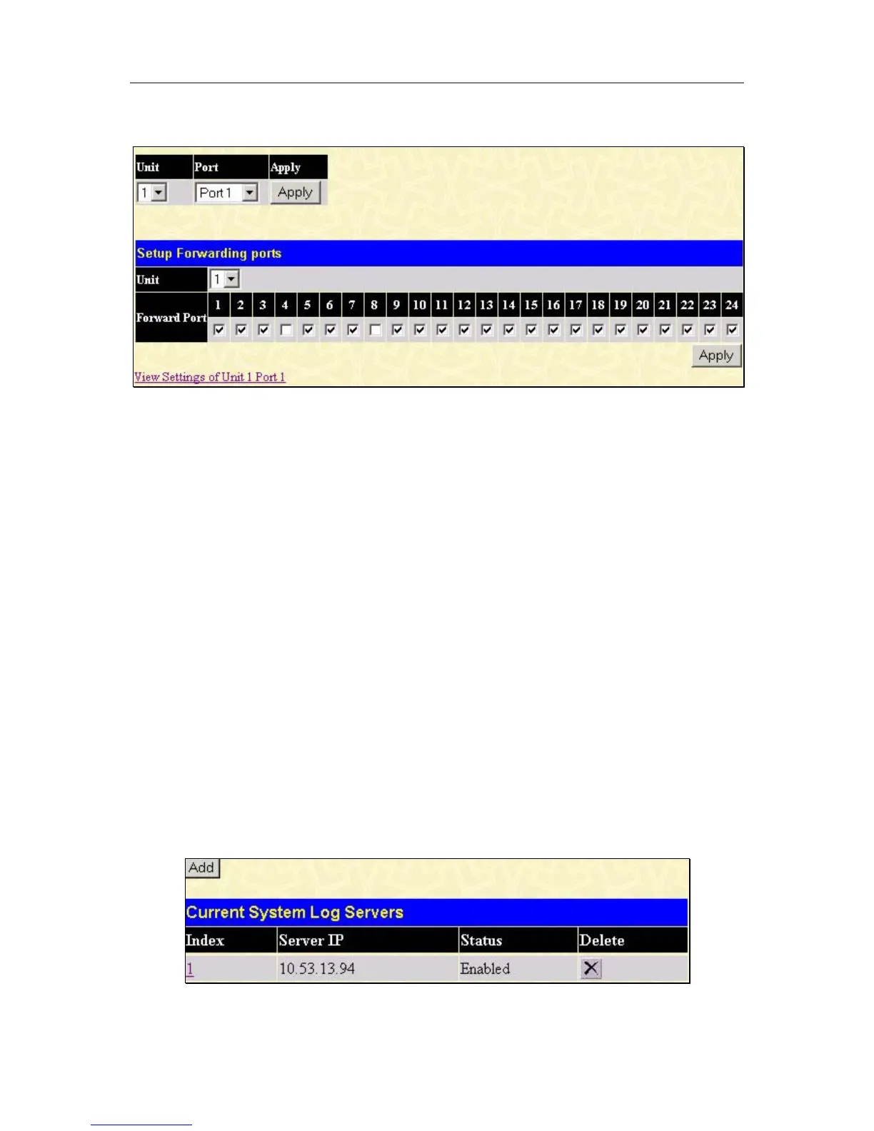 stack using that switch’s Unit ID. The Forward Port click boxes allow you to select which of the ports on the
