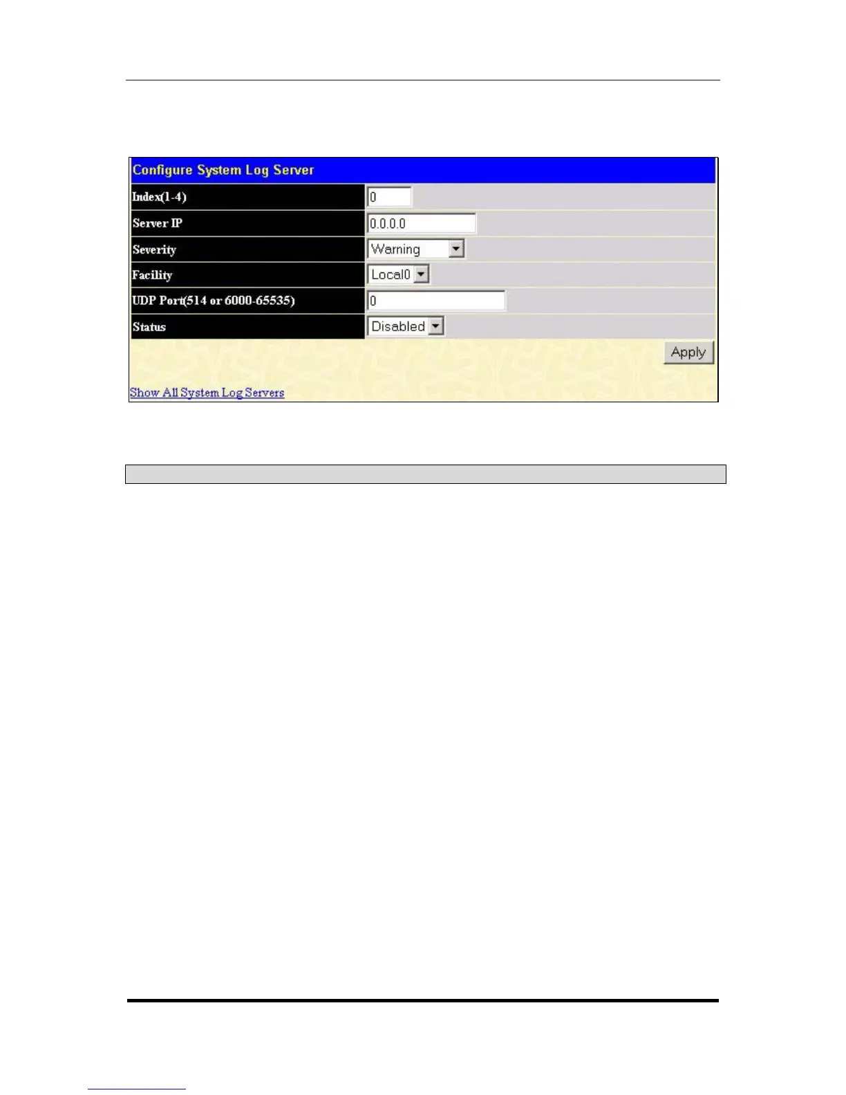Syslog server settings index (1-4).