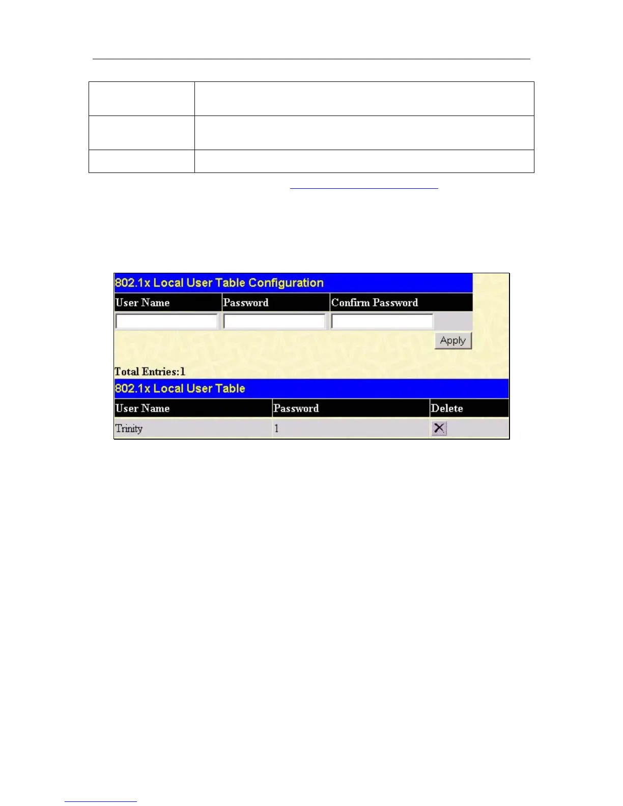 Figure 4- 52. 802.1x Local User Table Configuration window