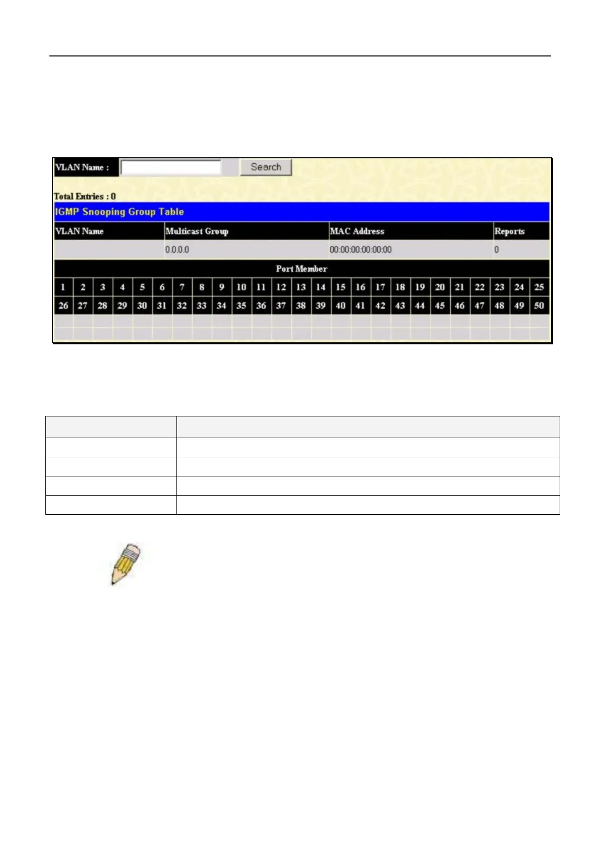 The user may search the IGMP Snooping Group Table by VID by entering it in the top left hand corner and clicking