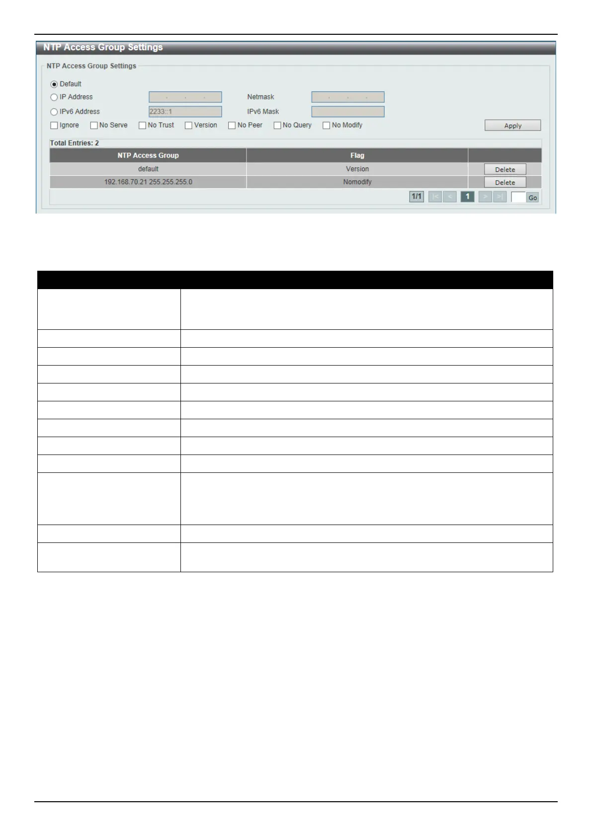 Figure 4-72 NTP Access Group Settings Window