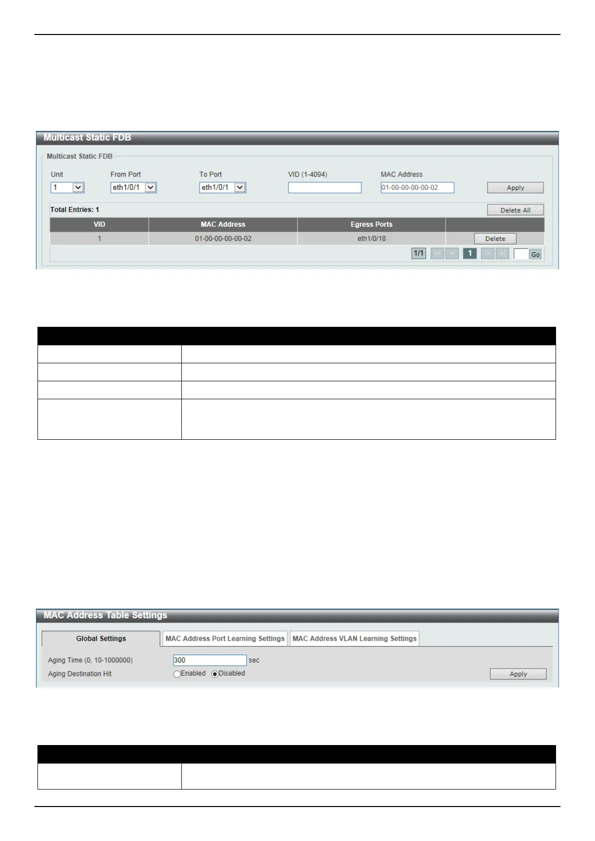 To view the following window, click L2 Features > FDB > MAC Address Table Settings, as shown below: