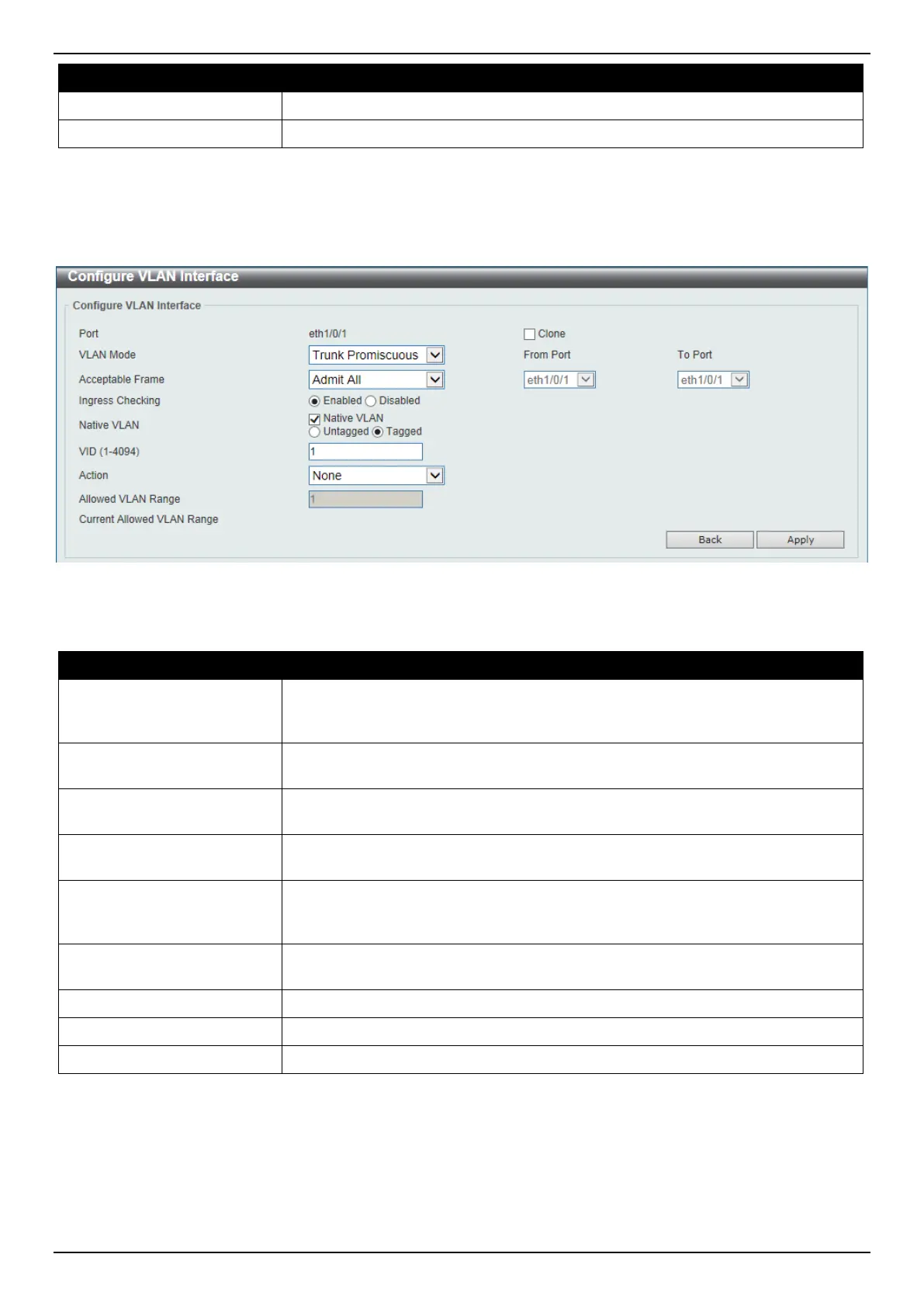 When Trunk Promiscuous was selected as the VLAN Mode, the following page will appear.