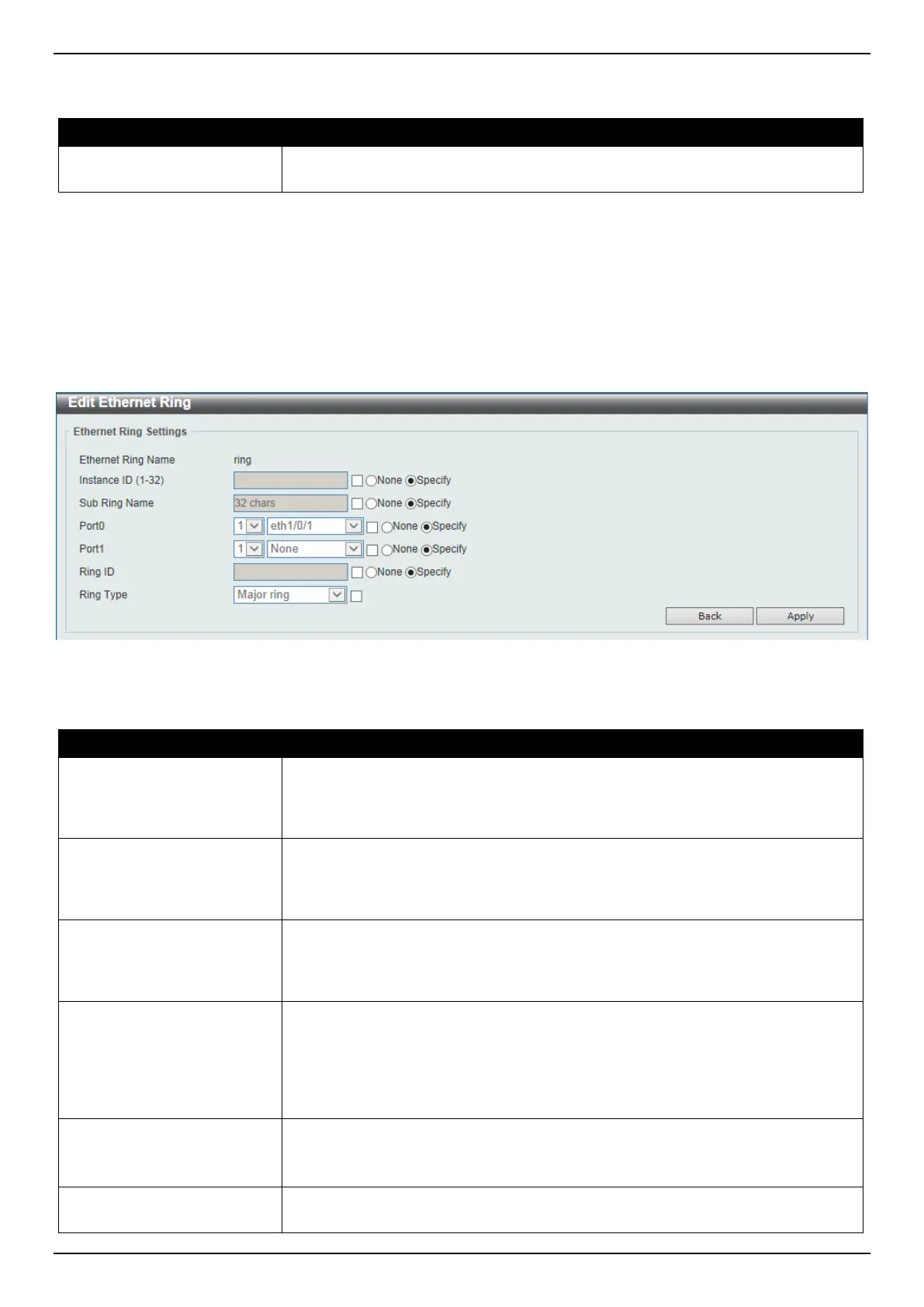 will be the first ring port of the physical ring. Select the Specify radio button to