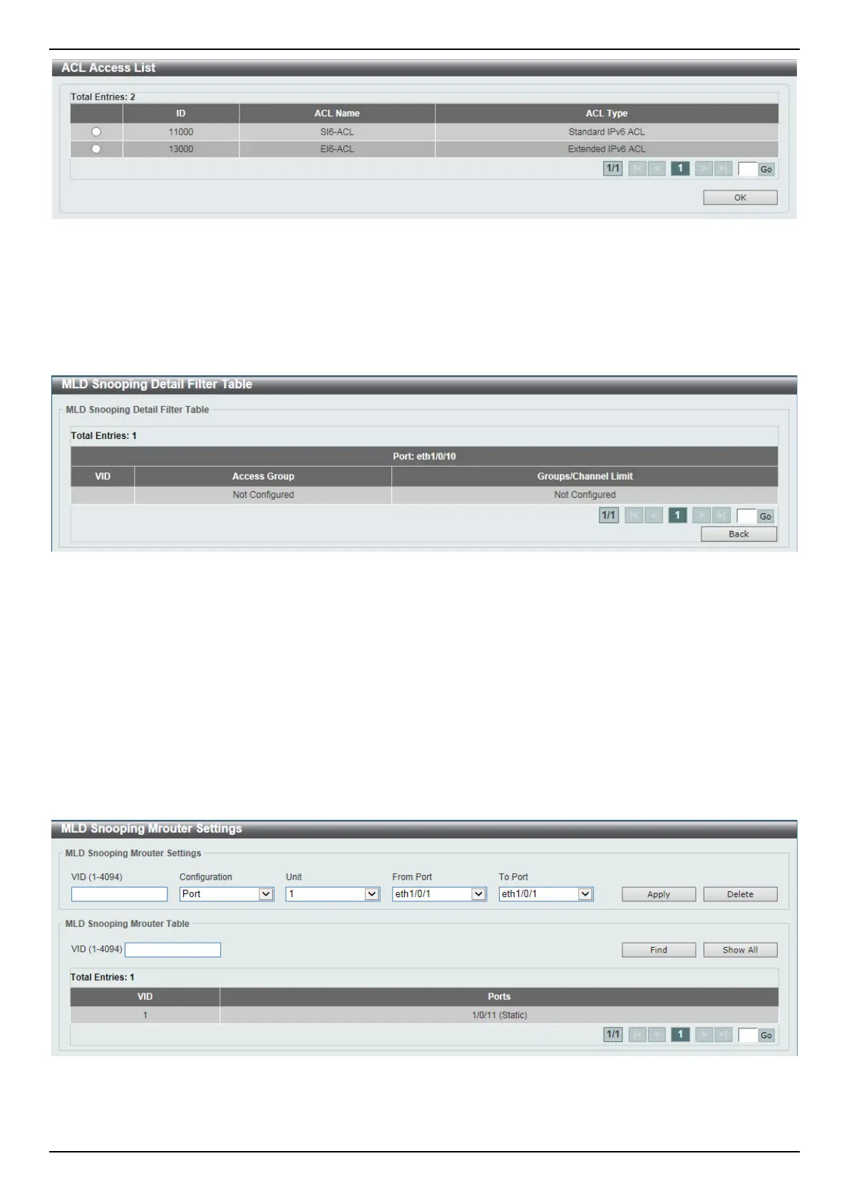 The fields that can be configured in MLD Snooping Mrouter Settings are described below: