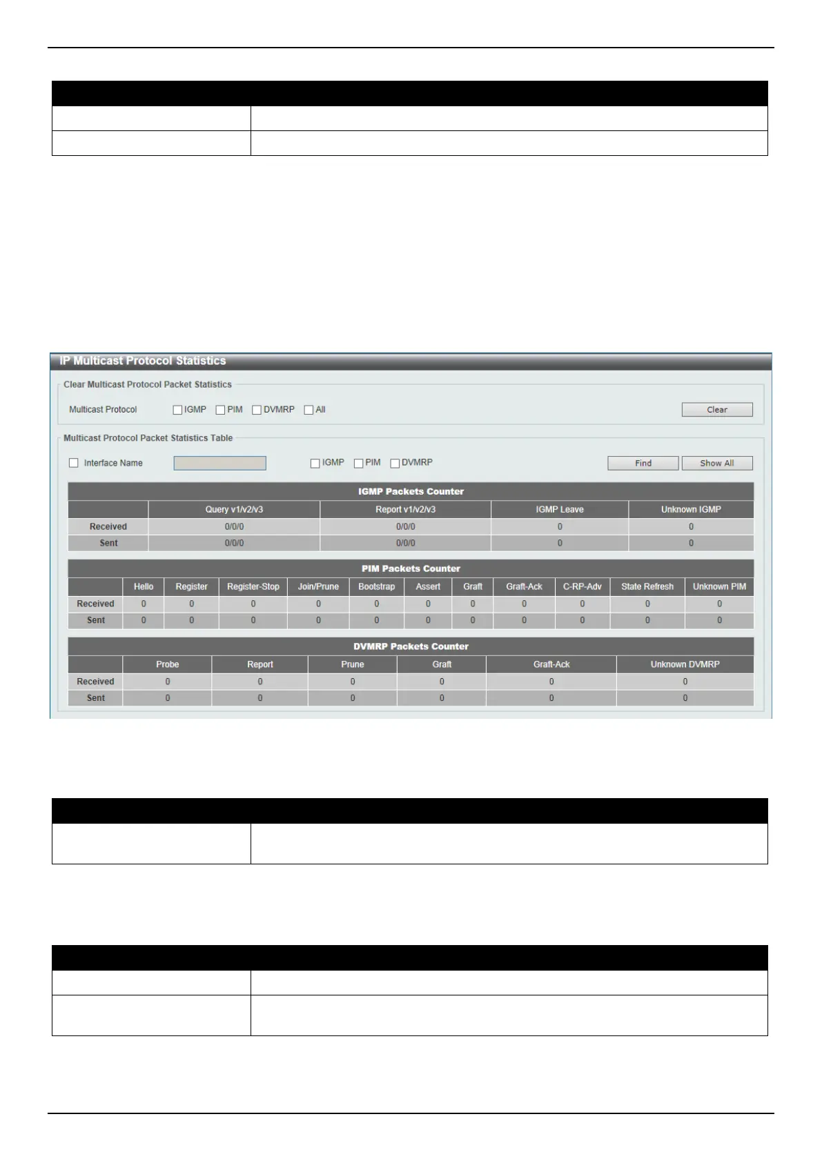The fields that can be configured in Multicast Protocol Packet Statistics Table are described below: