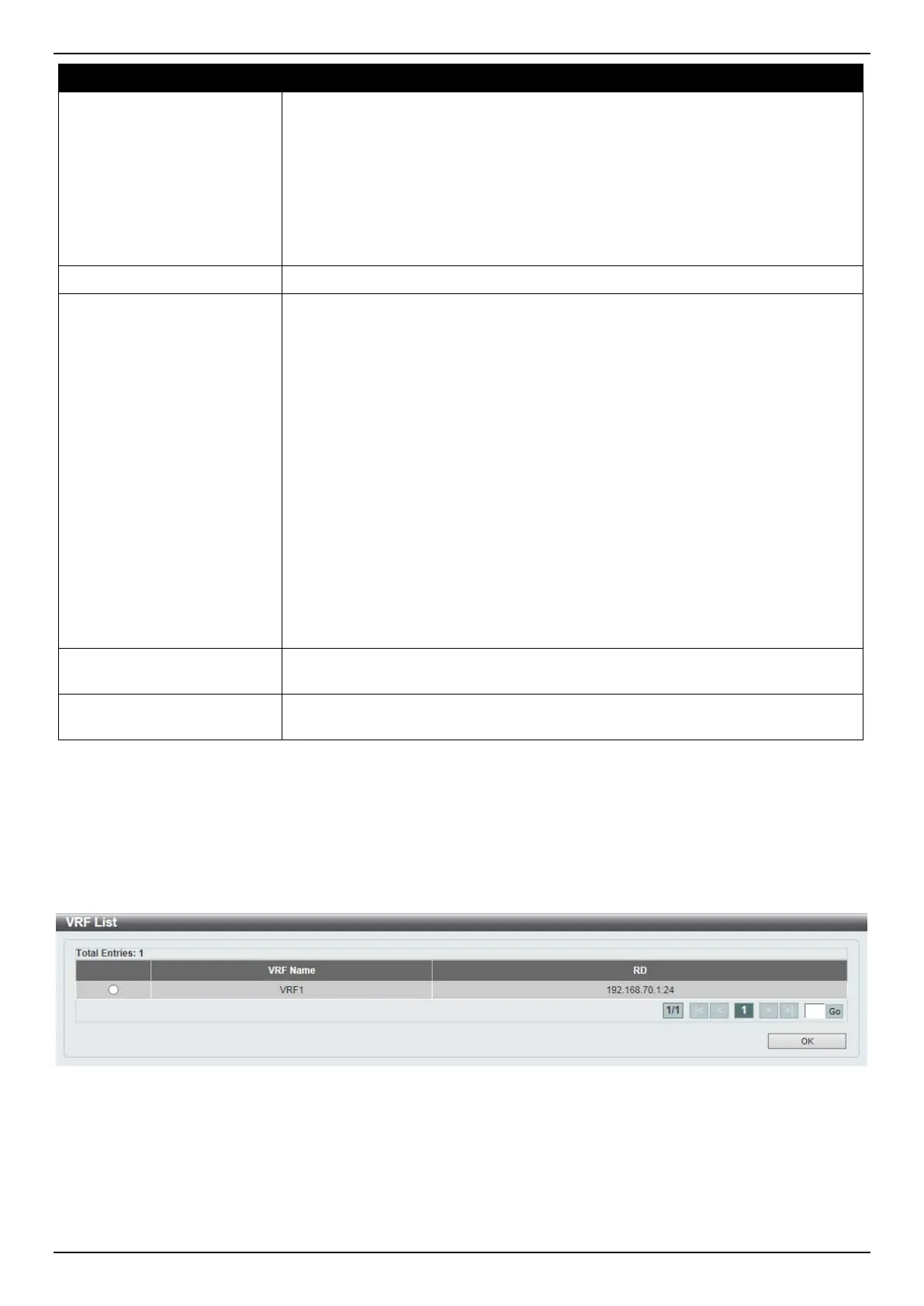 Select the VRF entry and click the OK button to use the selected VRF entry.