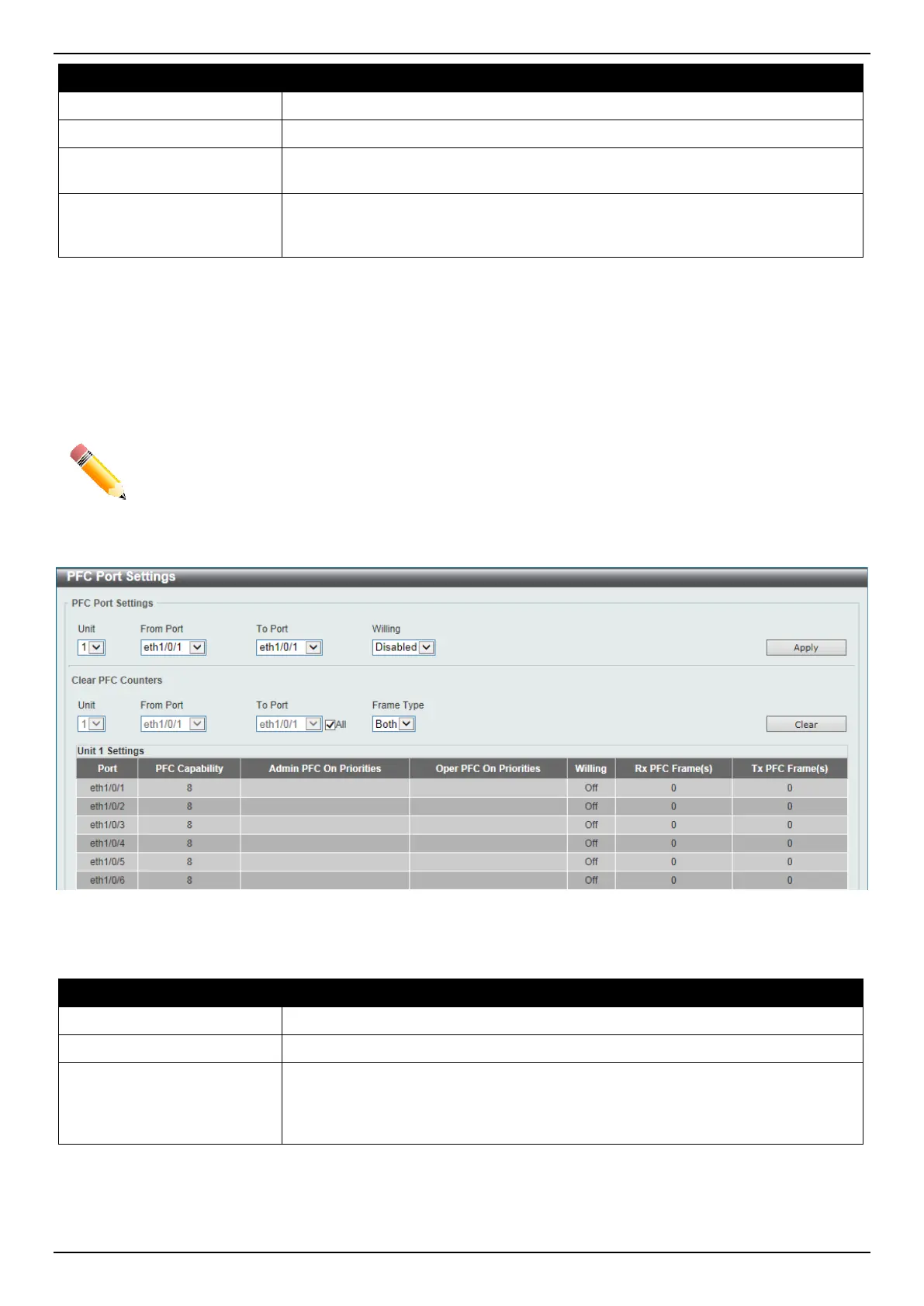 To view the following window, click QoS > QoS PFC > PFC Port Settings, as shown below: