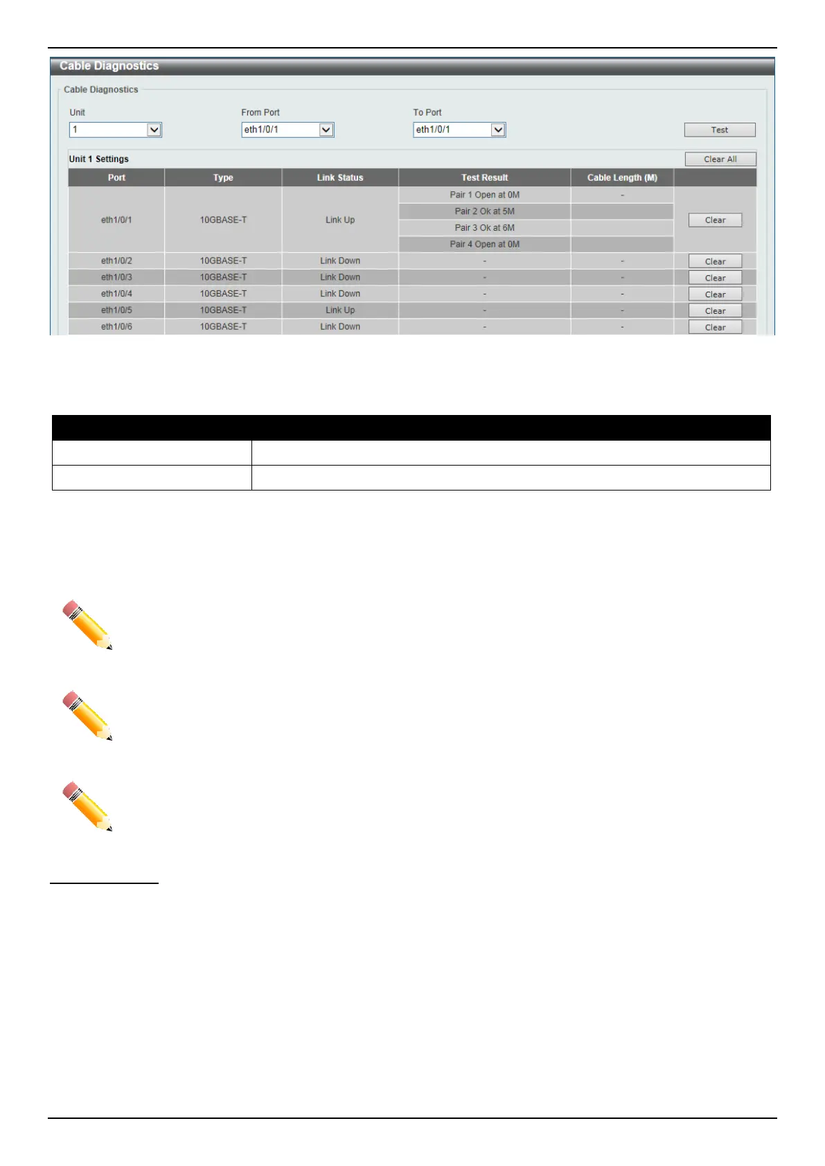 NOTE: Cable diagnostic function limitations. Cable length detection is only supported on GE ports.