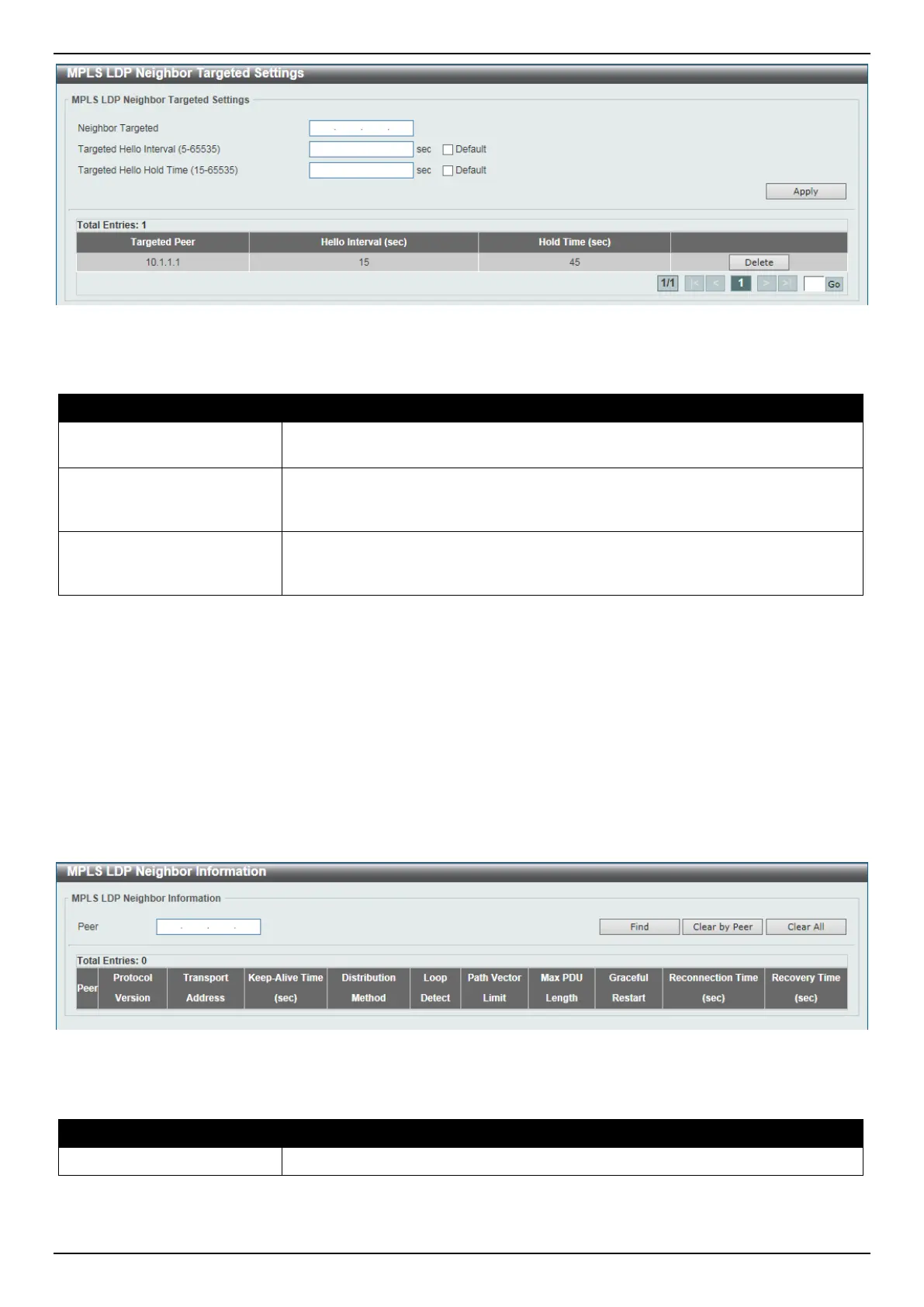 To view the following window, click MPLS > MPLS LDP Neighbor Information, as shown below: