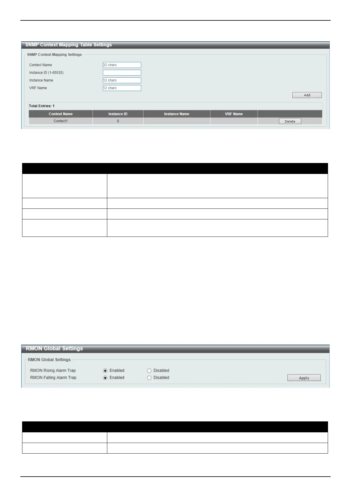 To view the following window, click Management > SNMP > SNMP Context Mapping Table Settings, as shown