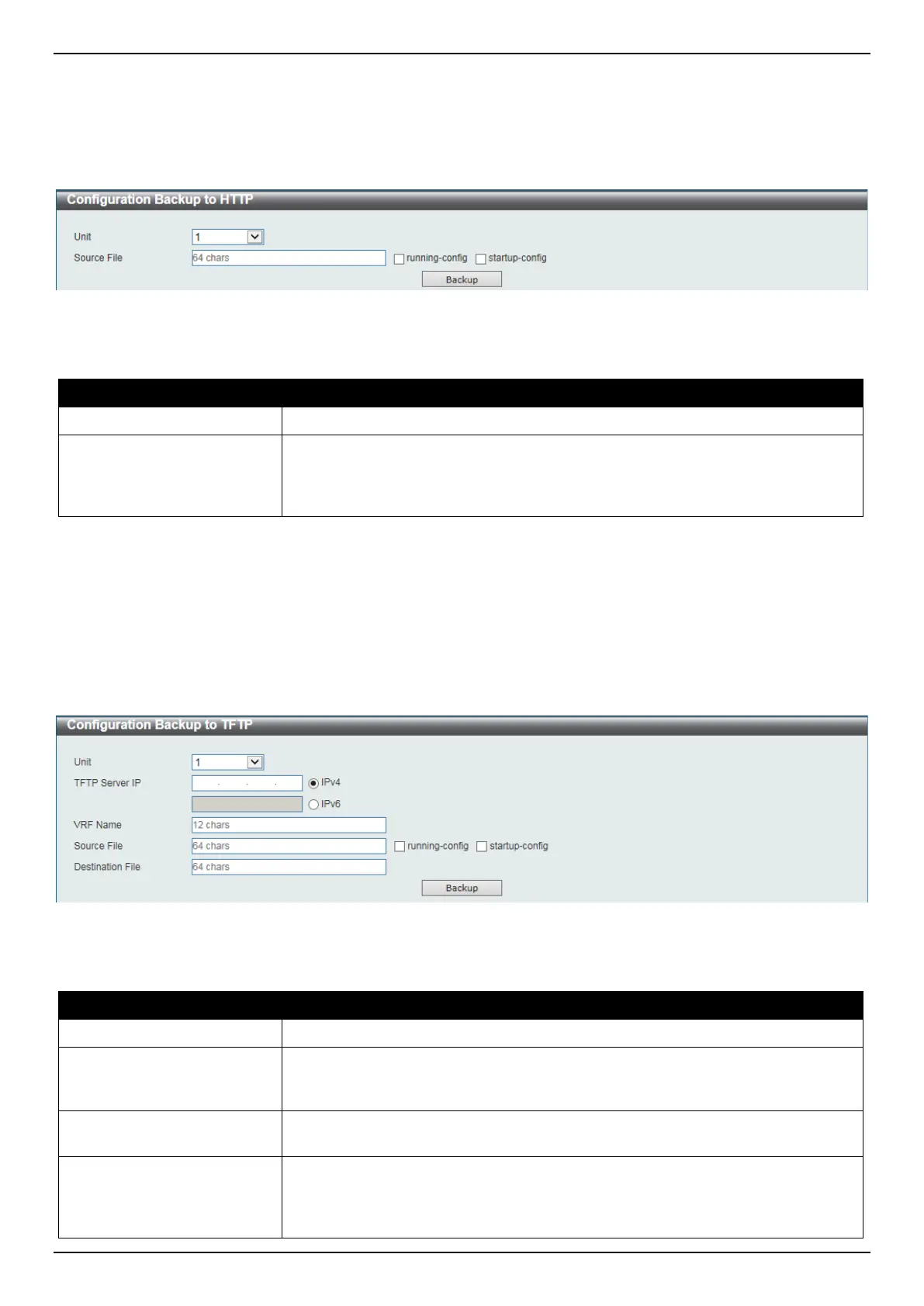 This window is used to initiate a configuration file backup to a local PC using HTTP.