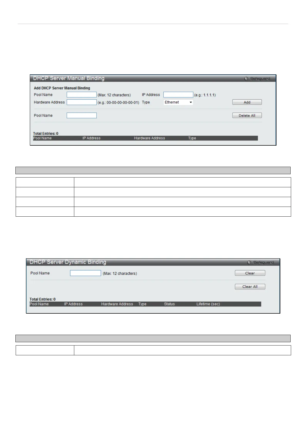 To view this window, click Network Application > DHCP > DHCP Server > DHCP Server Manual Binding, as