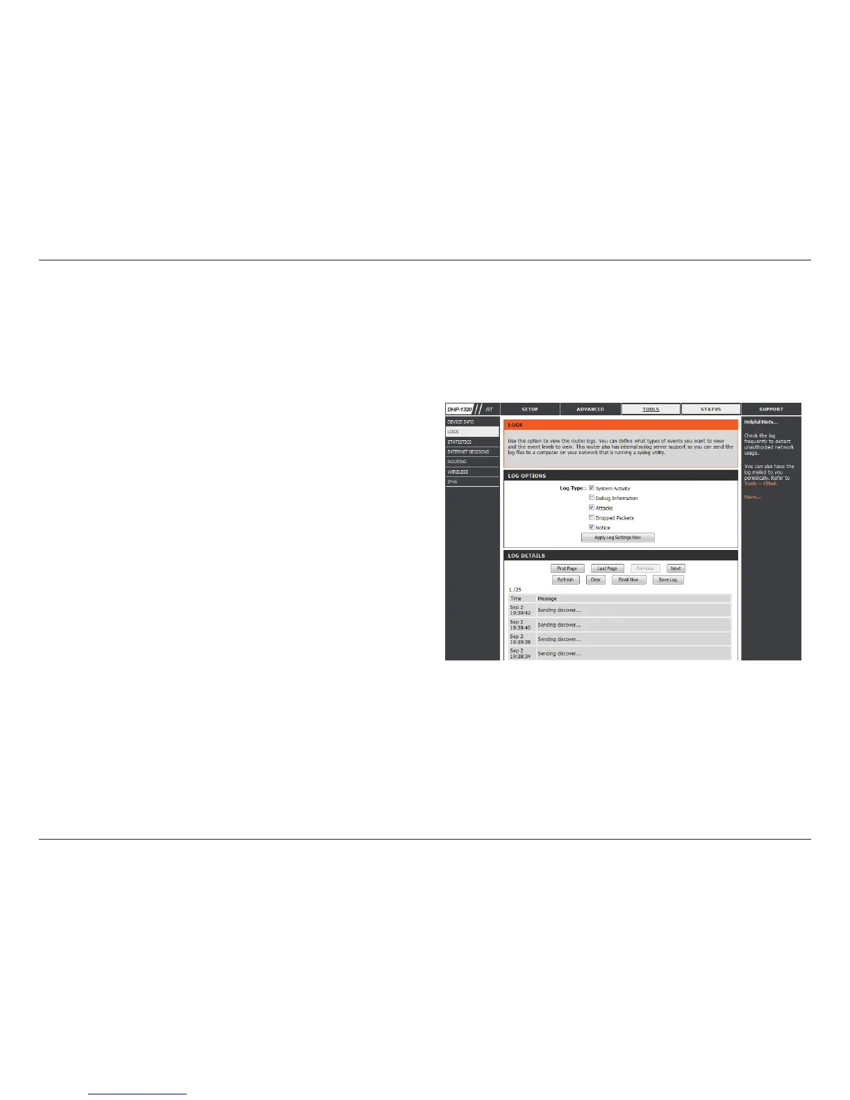 of older events are deleted but logs of the latest events are retained. The Logs option allows you to view the router logs. You can dene what types