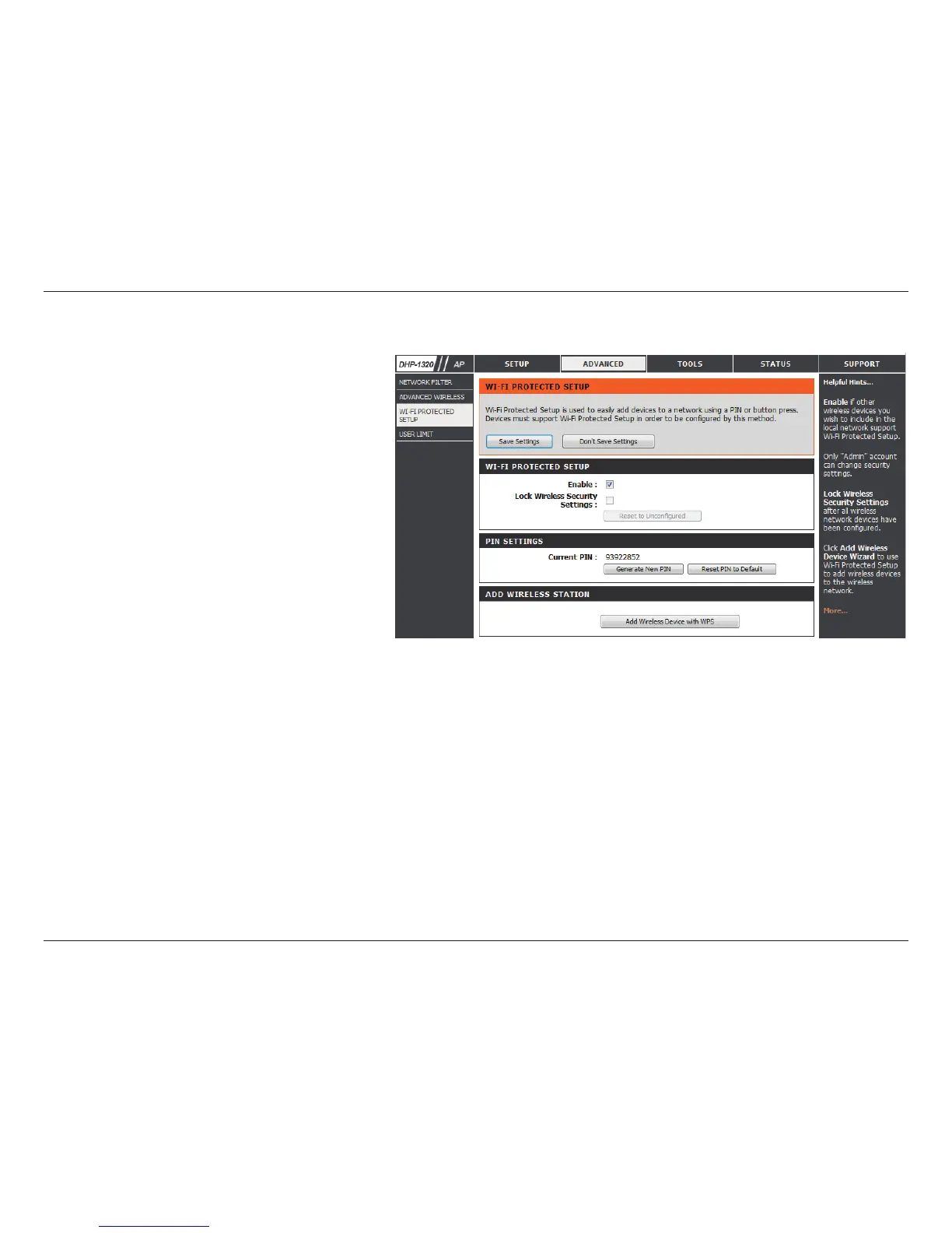 Enables the Wi-Fi Protected Setup feature.
