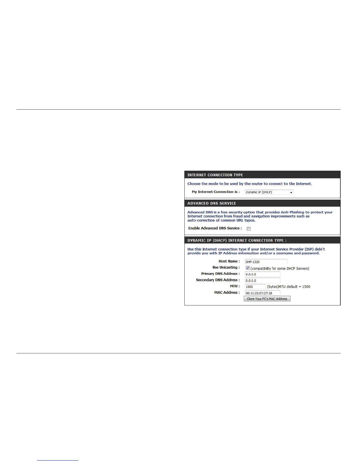 Select Dynamic IP (DHCP) from the drop-down menu to obtain IP Address information automatically from your ISP. Select