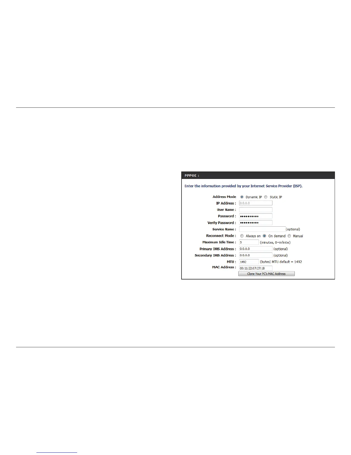 with a username and password. This option is typically used for DSL services. Make sure to remove your PPPoE software from