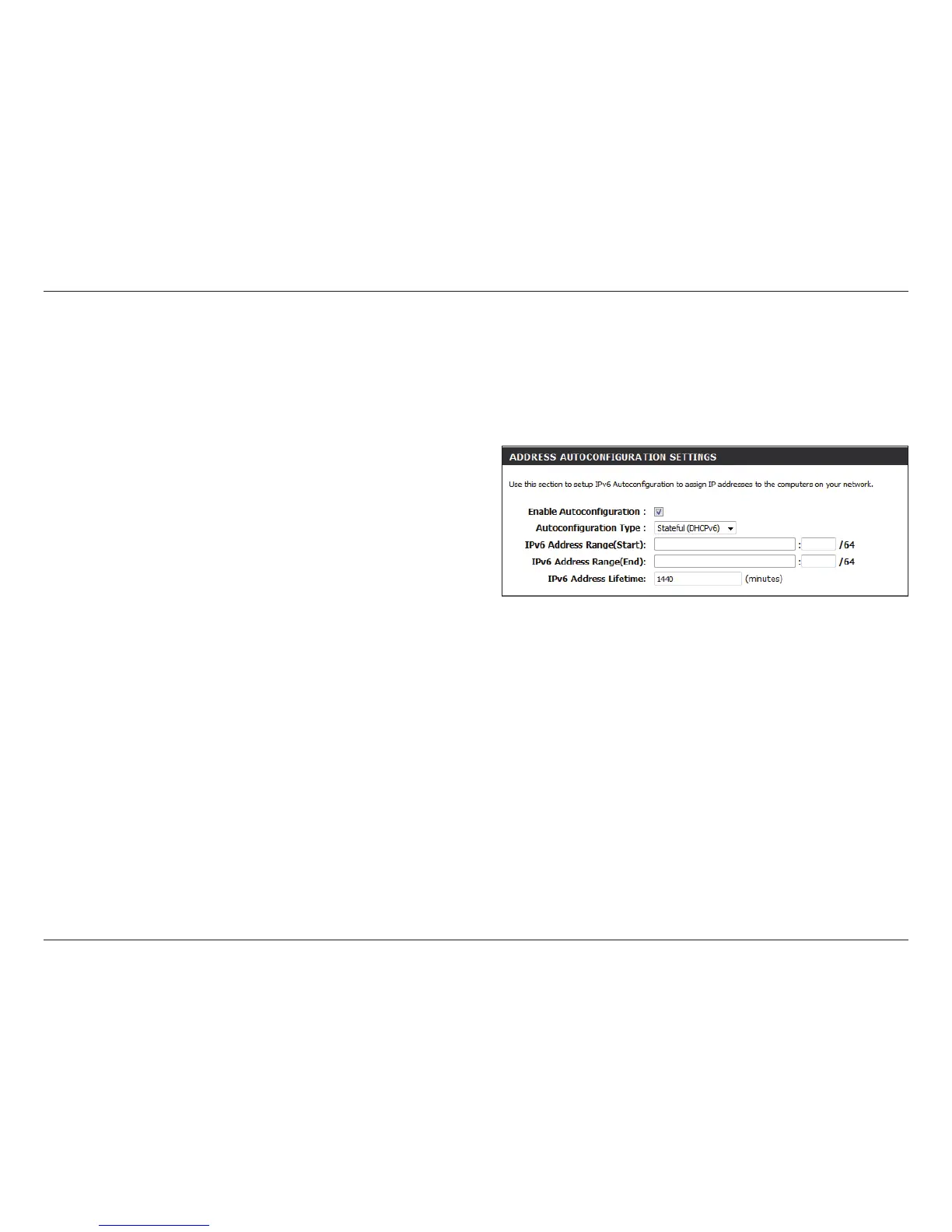 To congure the Router to use a Static IPv6 Stateful connection, congure the parameters in the LAN Address Autoconguration