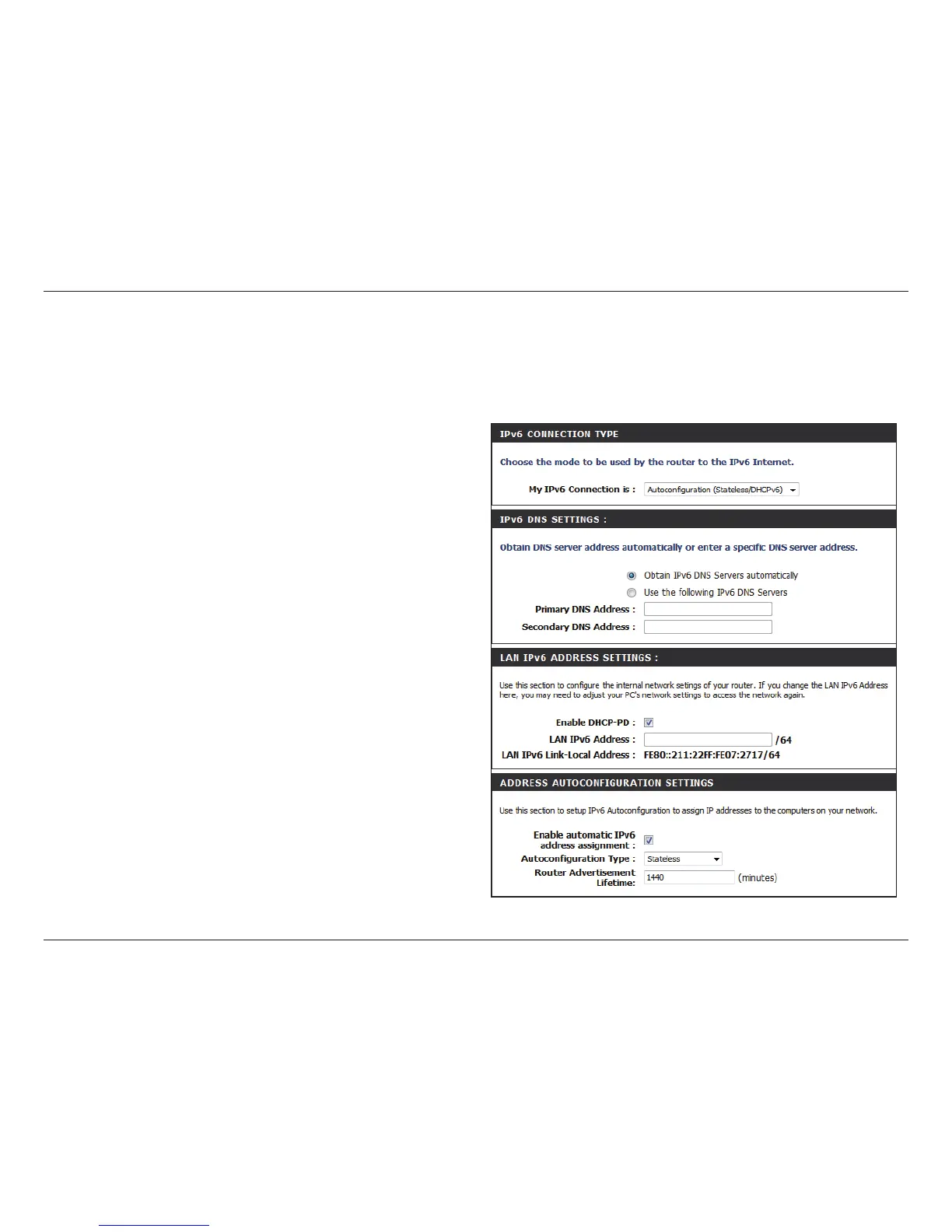Use this section to congure the IPv6 autoconguration