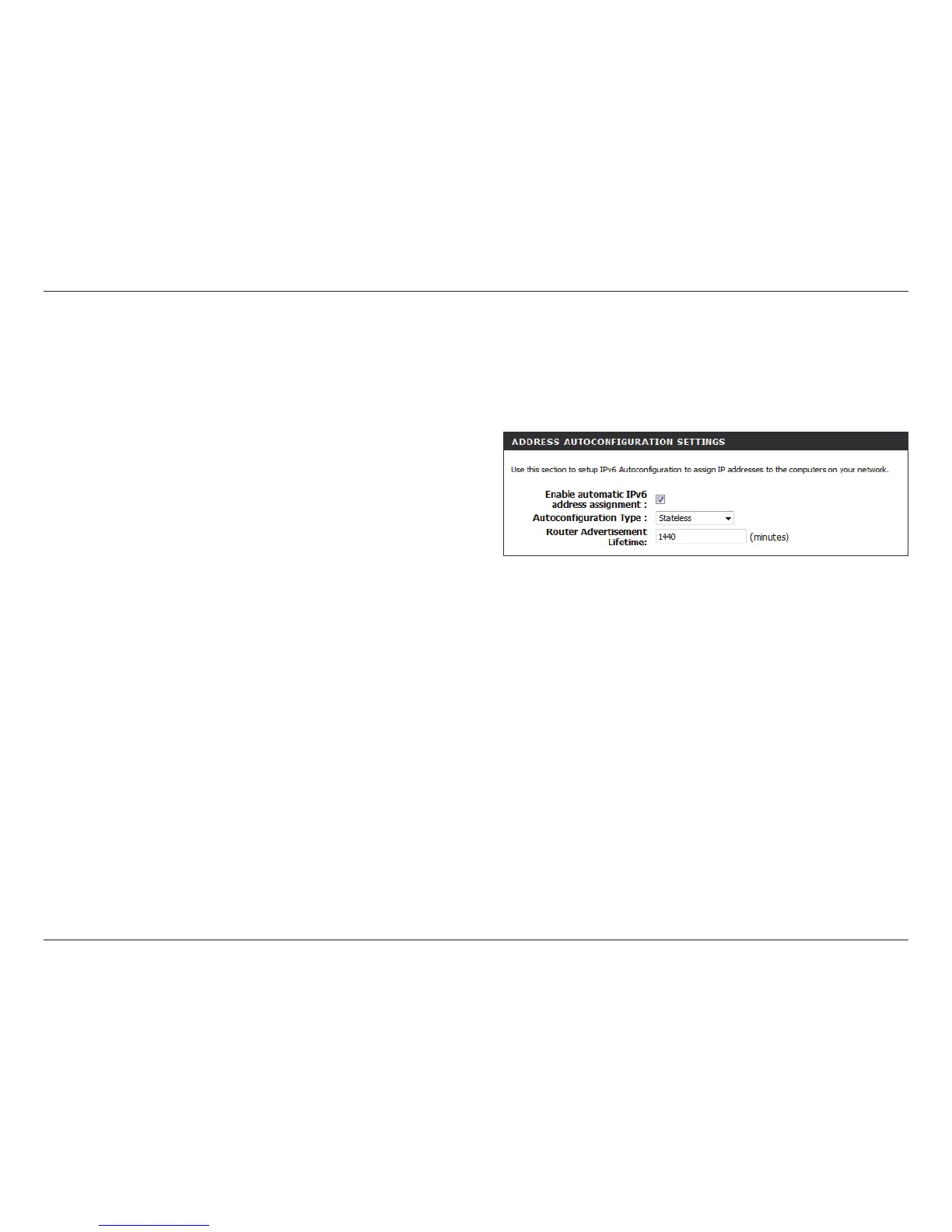 To congure the Router to use a Static IPv6 Stateless connection, congure the parameters in the LAN Address Autoconguration