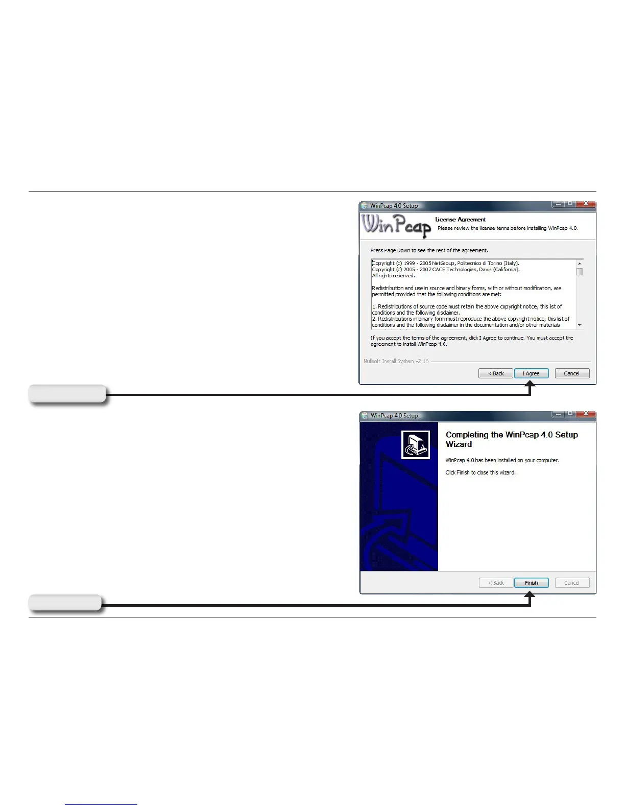 The WinPcap 4.0 Installation is complete. Click Finish to close