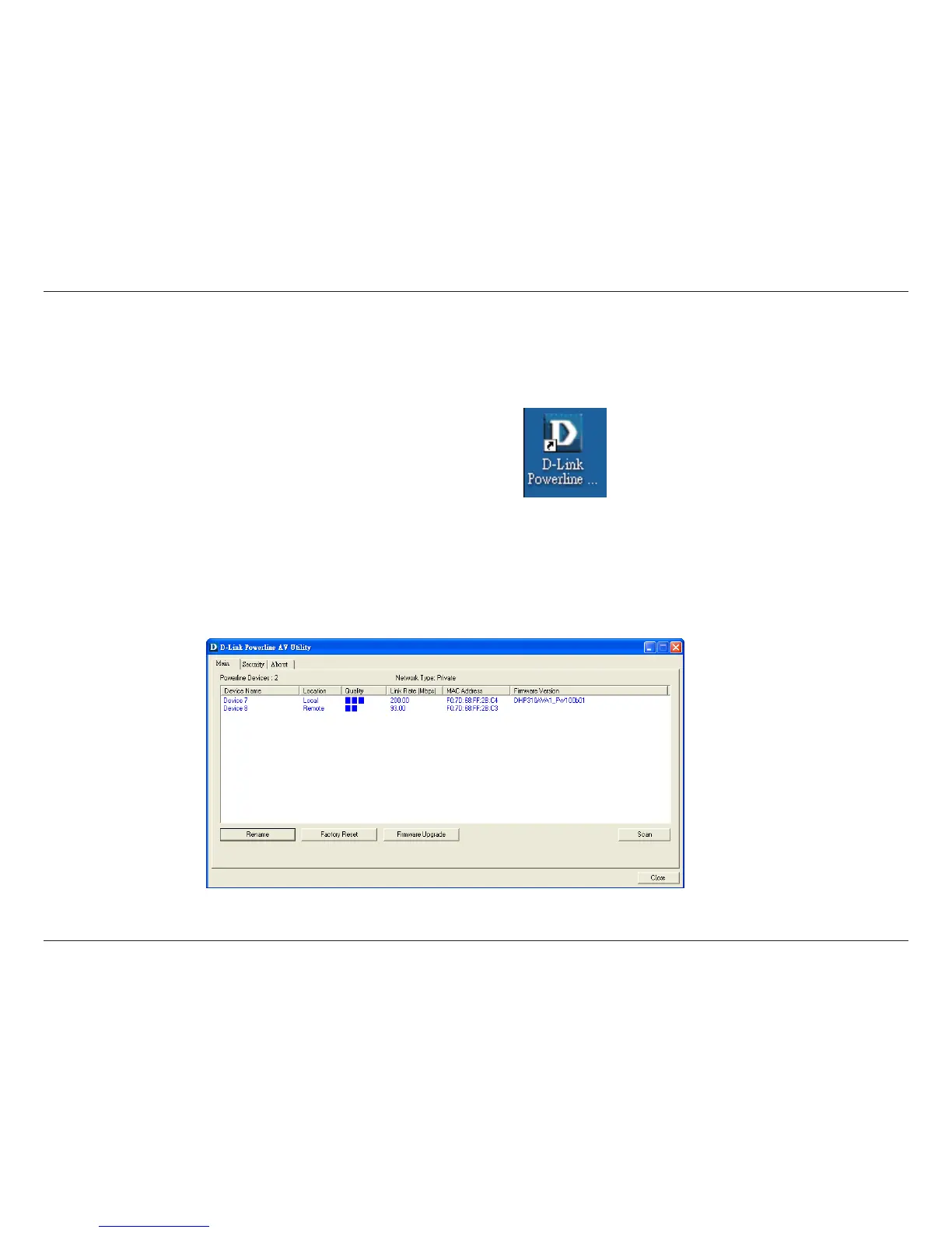 After you have completed the D-Link PowerLine AV Utility installation wizard, double-click the D-Link PowerLine AV Utility icon on your desktop to