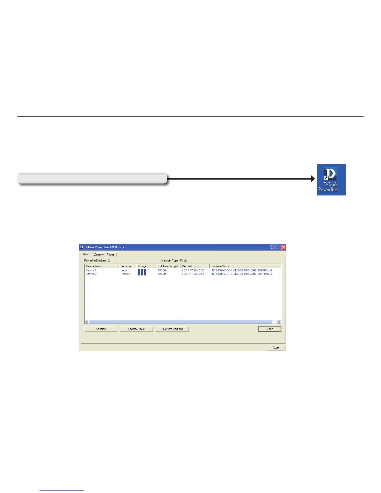 After you have completed the D-Link PowerLine AV Utility installation wizard, double-click the D-Link PowerLine AV Utility