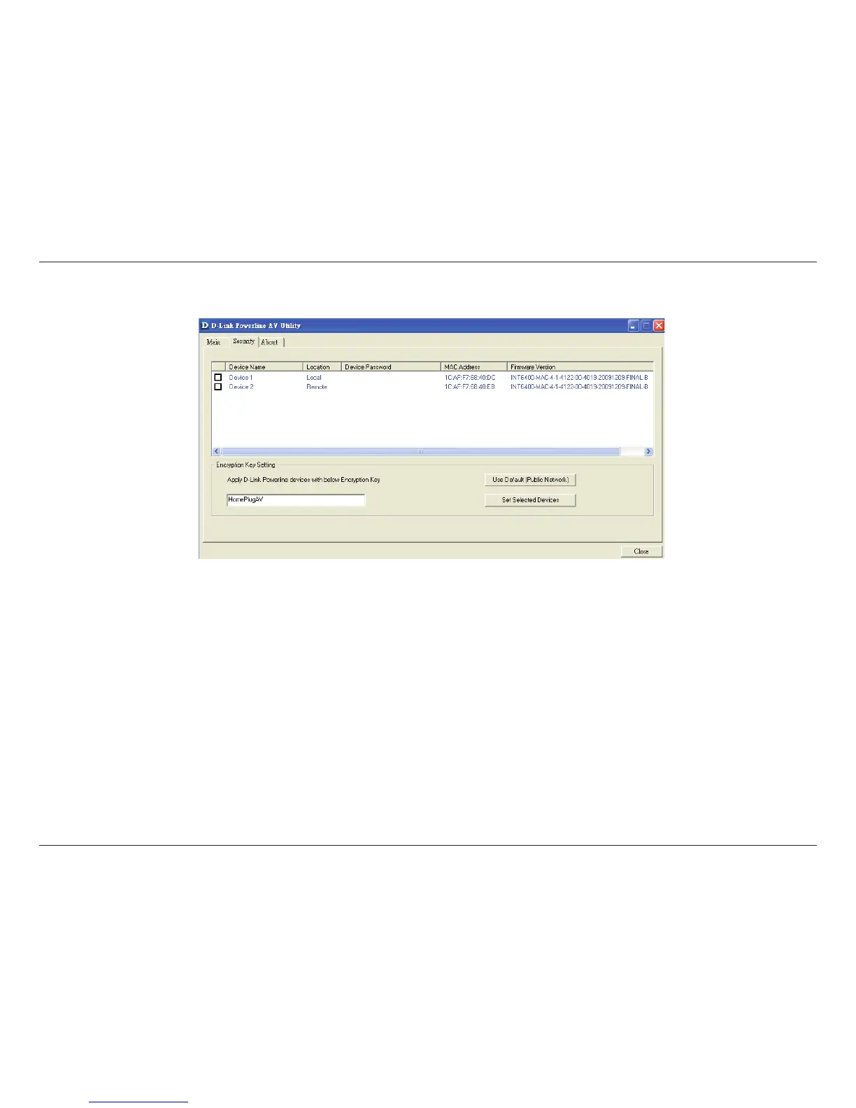 The PowerLine devices on the same network must use an identical encryption key. The default encryption key of each PowerLine