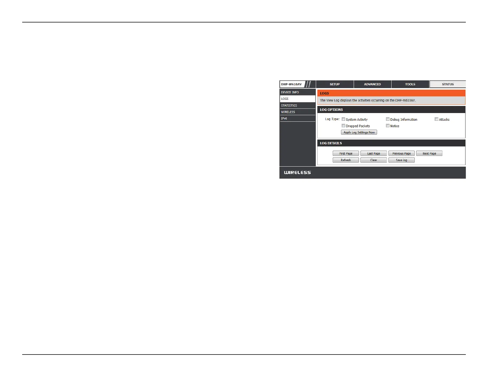 The DHP-W610AV keeps a running log of events and activities occurring on the DHP-W610AV. If the device is rebooted, the logs are automatically
