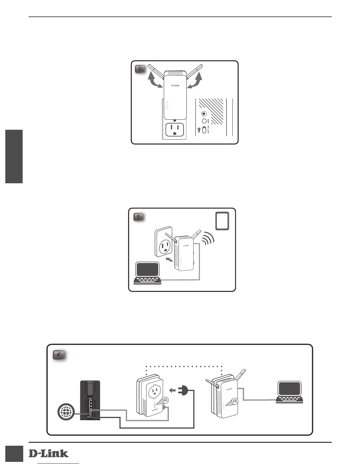 2. Extienda completamente las antenas y conecte el DHP-W610AV a una toma