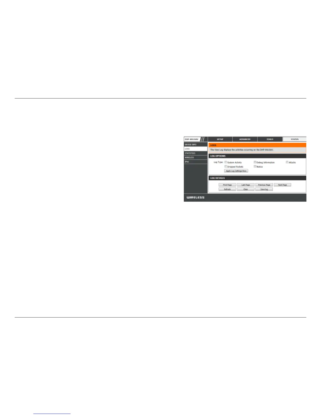 The DHP-W610AV keeps a running log of events and activities occurring on the DHP-W610AV. If the device is rebooted, the logs are automatically
