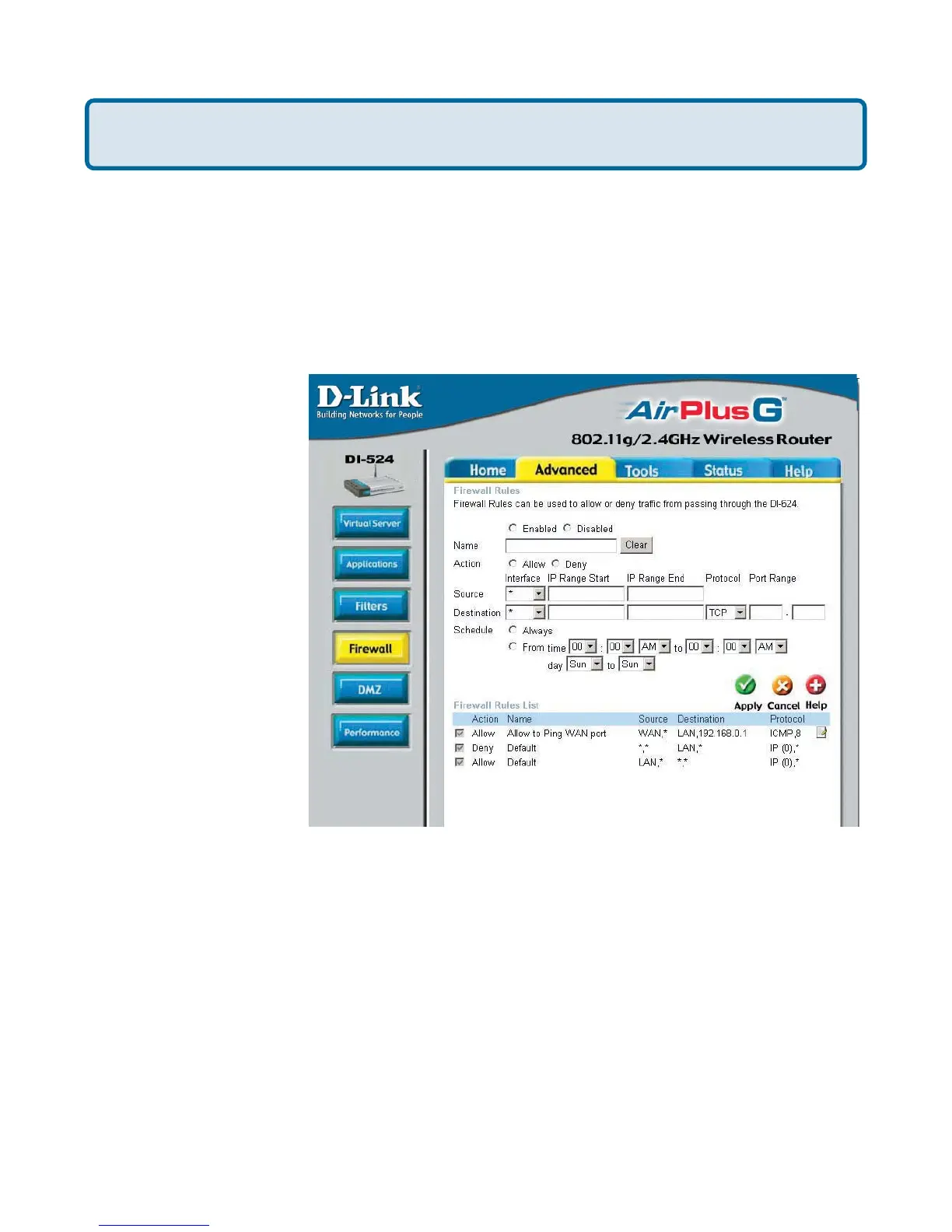 How do I open a range of ports on my DI-524 using Firewall rules?