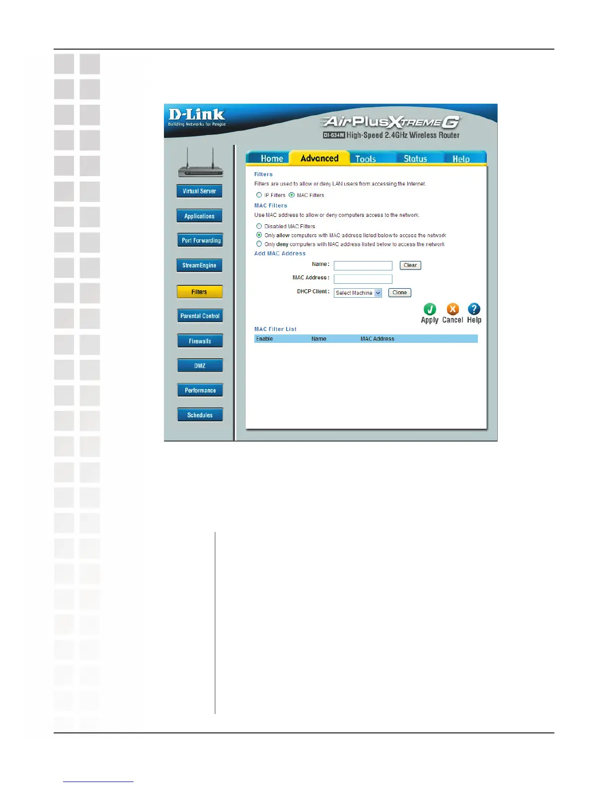 Advanced > Filters (MAC Filters)