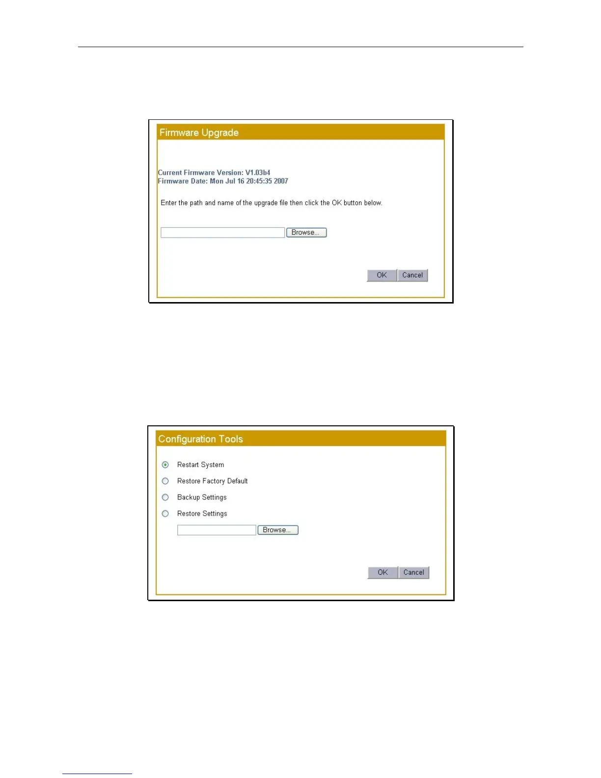 Use the configuration tools options to perform a simple Restart System, Restore Factory Default settings,