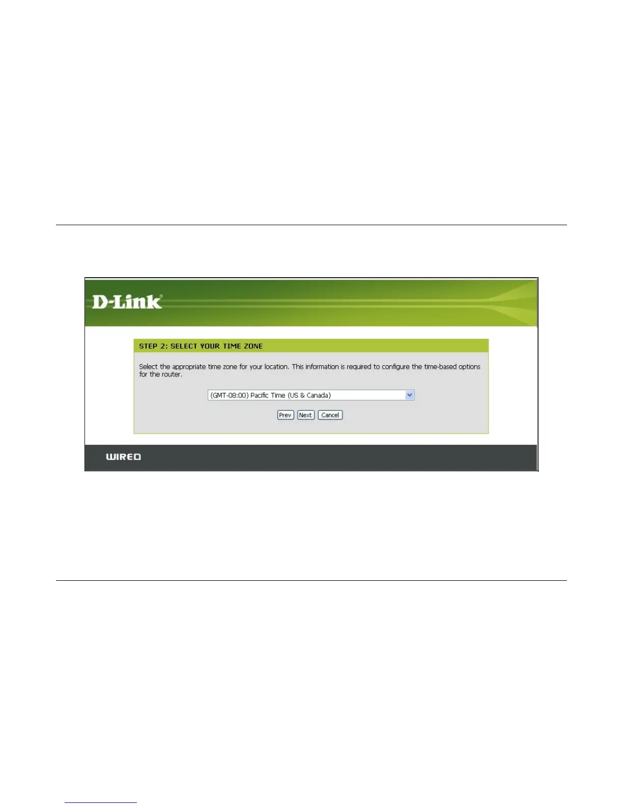 Choose the time zone you are in from the pull-down menu and click Next. This sets the system time used for the Router. If you wish to return to the previous menu during the