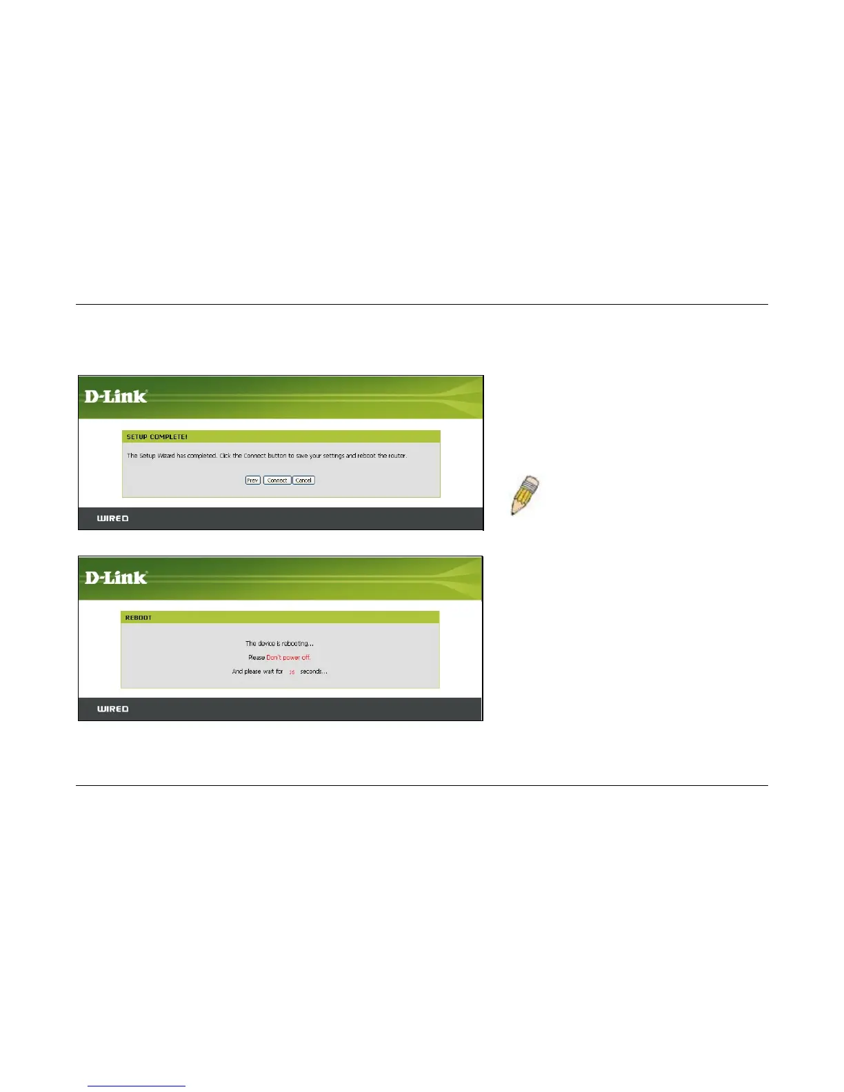 the new configuration settings and restart the Router. If you need to change settings from a previous menu, click the Back button.