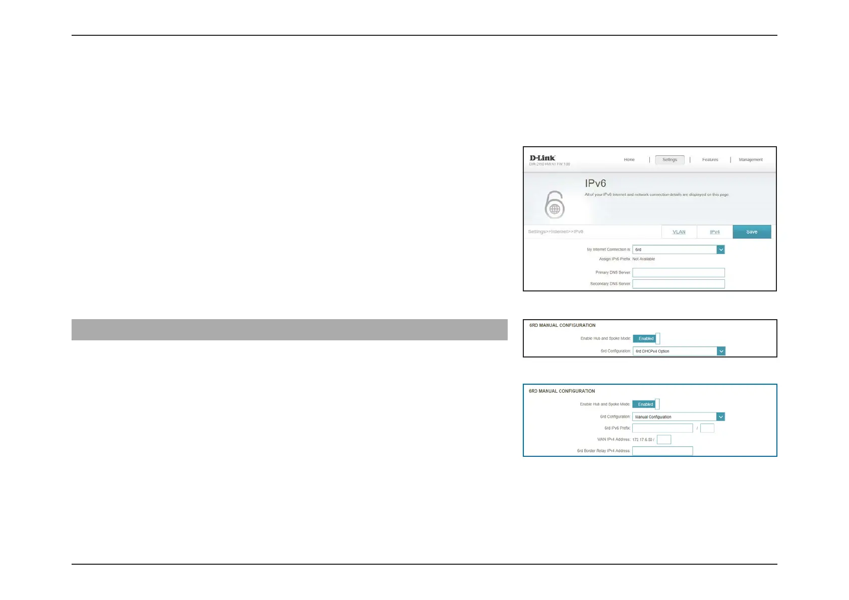 In this section the user can congure the IPv6 6rd connection settings. Click Save at any time to save the changes you have