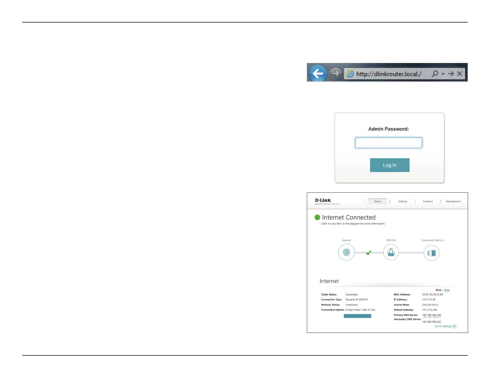 Explorer and enter http://dlinkrouter.local./ or you may also connect by