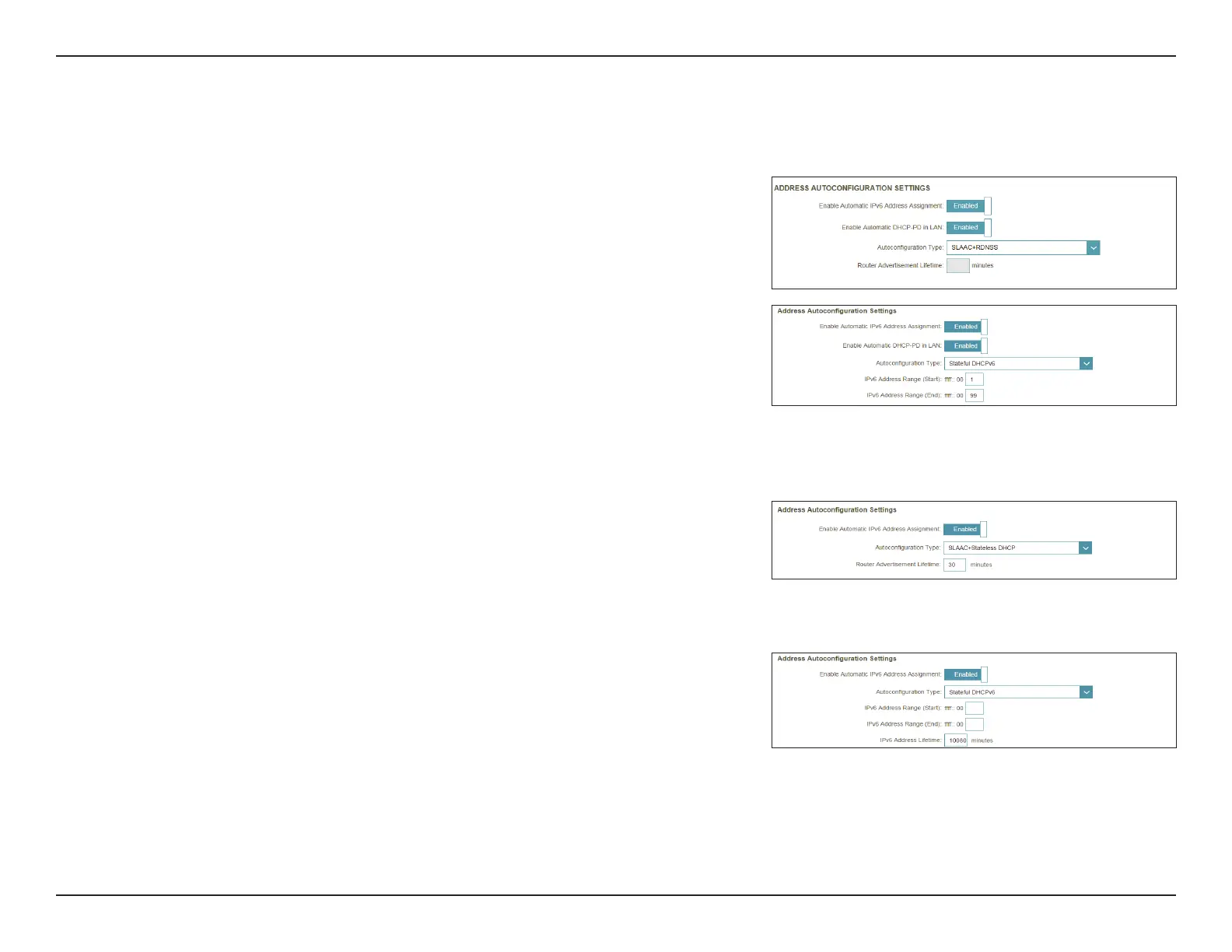 If you selected SLAAC+RDNSS or SLAAC+Stateless DHCP as the Autoconguration Type: