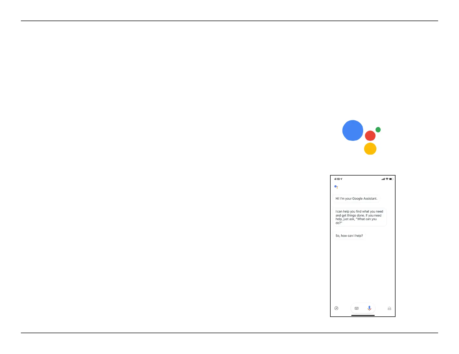 You will need the Google Assistant app, a Google account and a D-Link Cloud Service account to use this feature.
