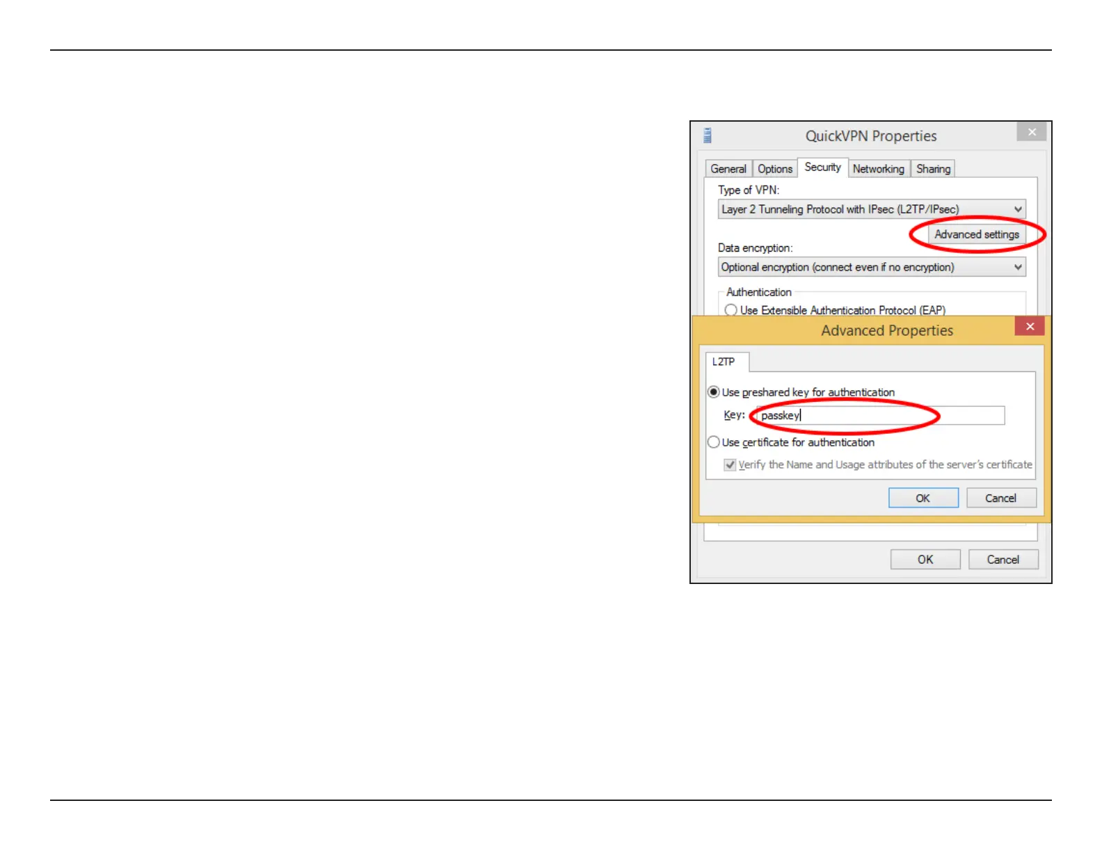 Click OK to close Advanced Properties and click OK to close Quick VPN