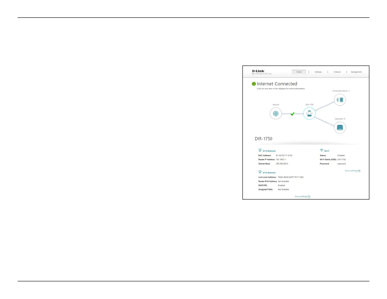 Click on the DIR-1750 icon to view details about the router and its wireless settings.