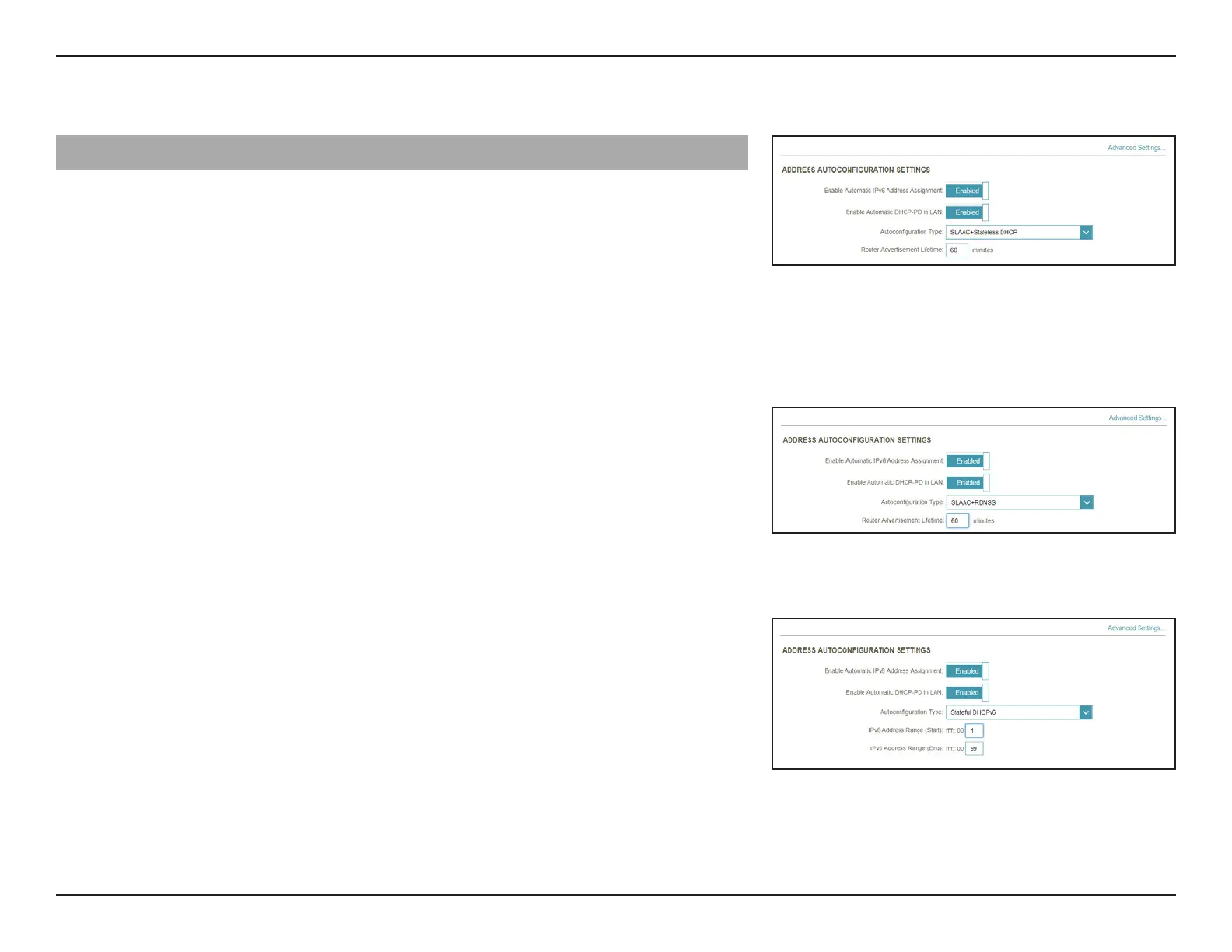 SLAAC+RDNSS or SLAAC+Stateless DHCP as the Autoconguration Type: