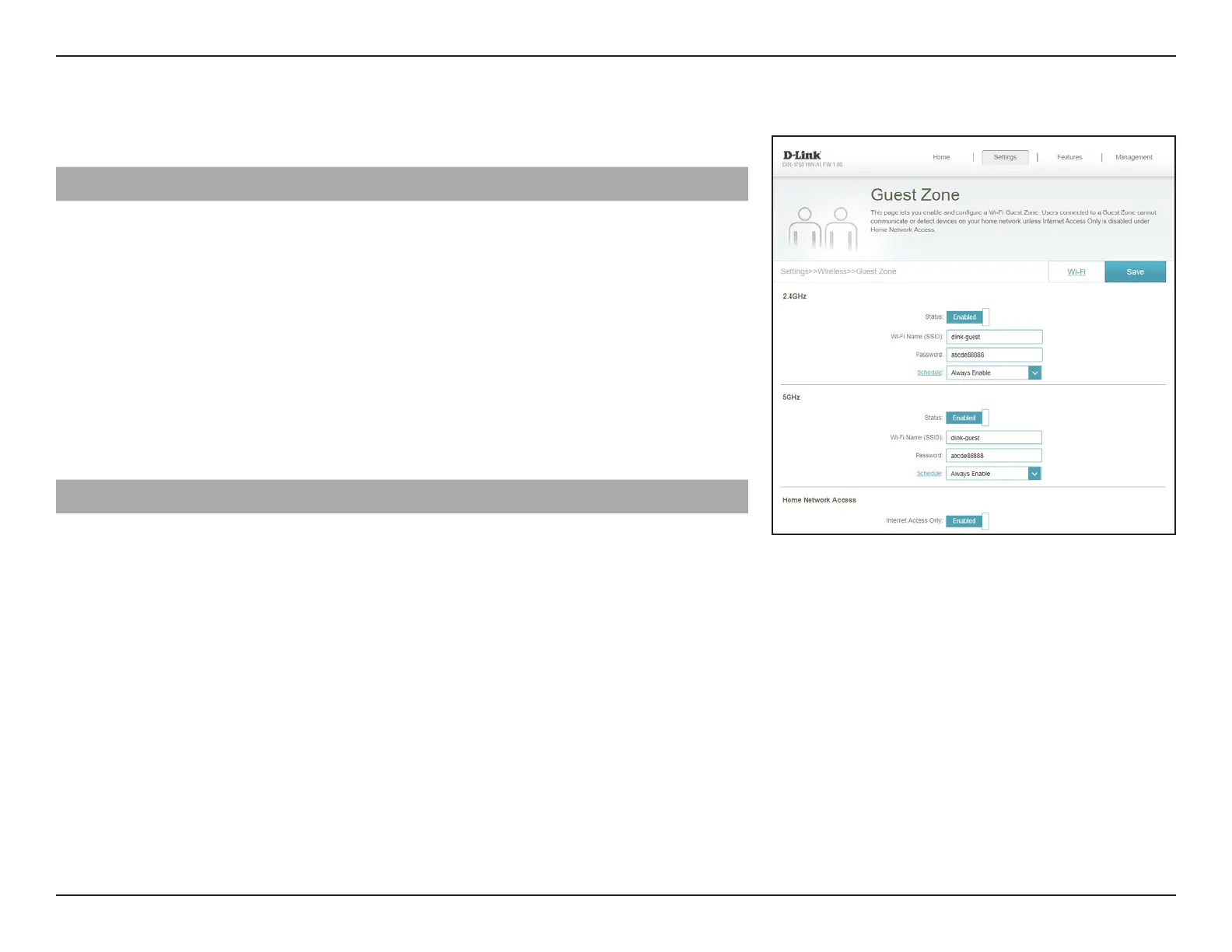 Status Enable or disable the Guest Zone feature. The status is disabled